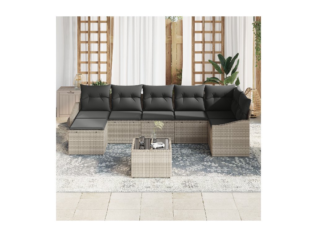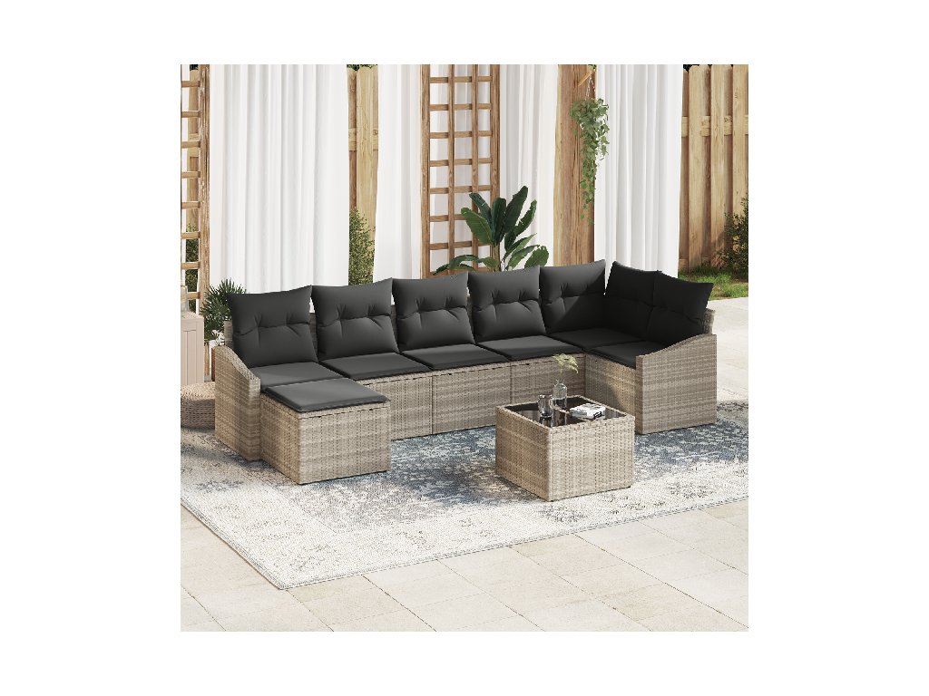 Sada zahradních pohovek s polštářem 8 pcs Světle šedá polyratan