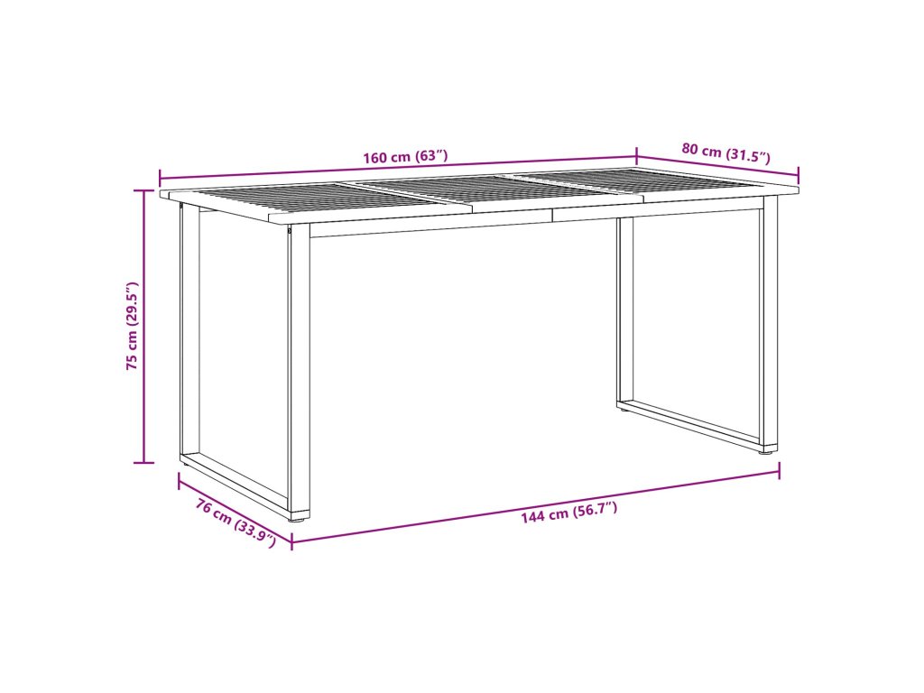 - Celkové rozměry: 160 x 80 x 75 cm (D x Š x V)
