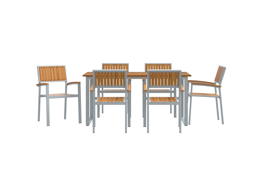 - Součásti: S pevným masivním akáciovým dřevem na opěrkách je tahle souprava zaměřená na komfort a odolnost. Ocelové nohy ji drží stabilní a bez problémů zvládá časté používání. Povrch, sezení a rám z masivního akáciového dřeva vytvářejí hezký a stylový vzhled.