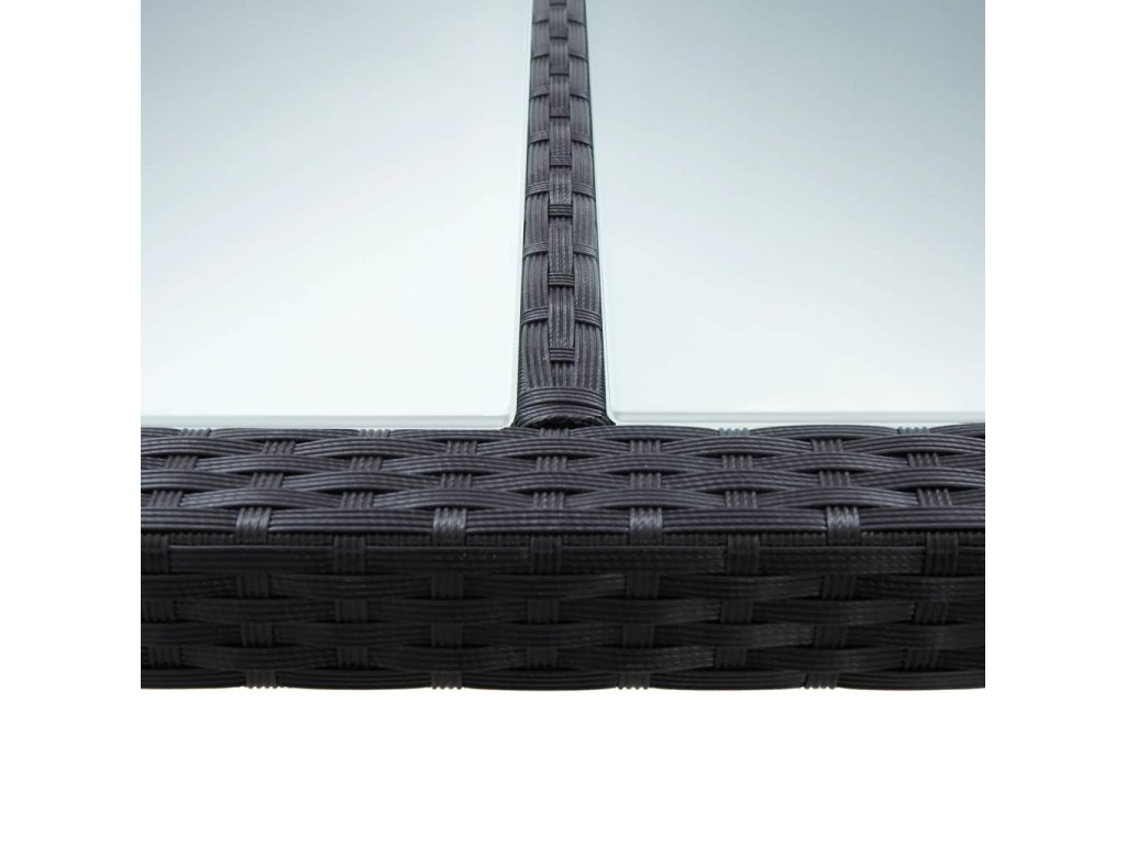 - Materiál: PE ratan, mléčné tvrzené sklo a ocel