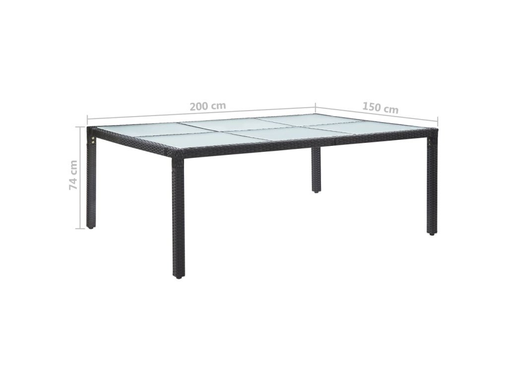 Venkovní jídelní stůl černý 200 x 150 x 74 cm polyratan