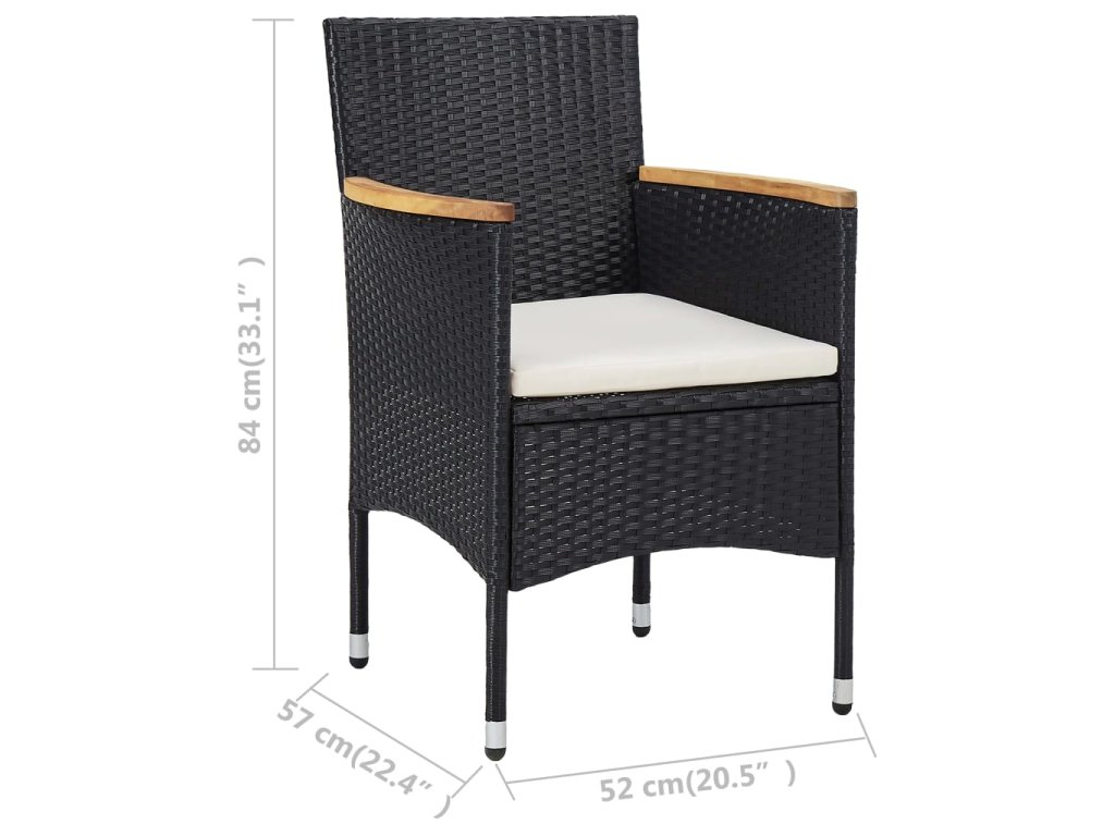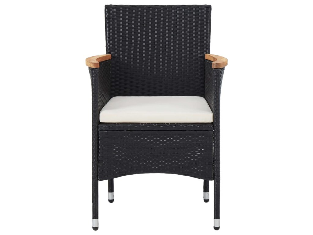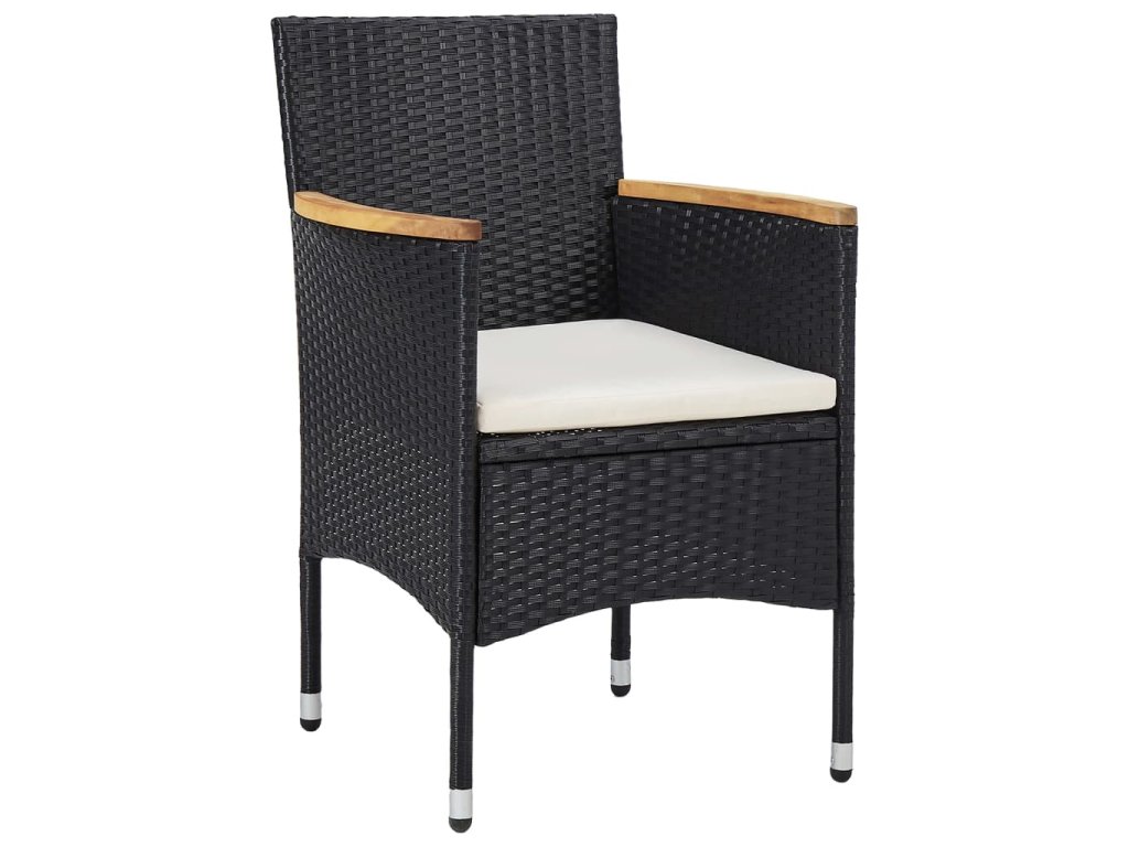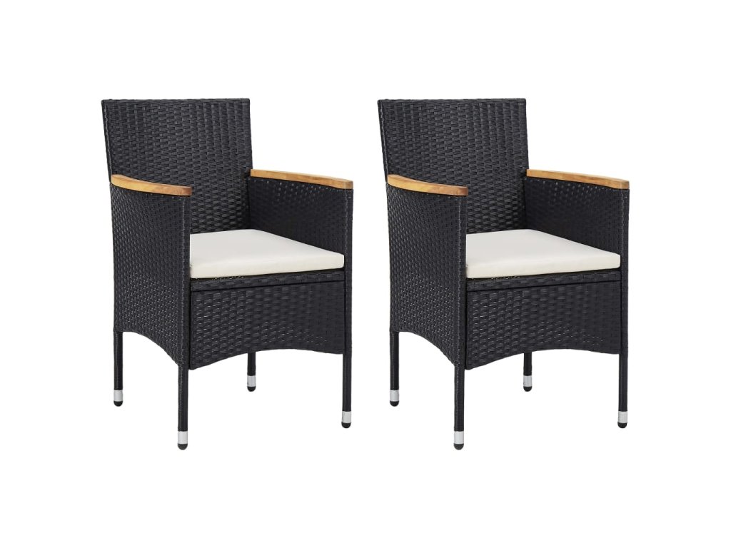 Židle mají robustní ocelový rám ovinutý ručně pleteným PE ratanem, který skvěle odolává klimatickým vlivům, nepodléhají proto rzi ani plísním a celá léta si na nich můžete dopřávat kvalitní odpočinek. Zakřivené opěradlo a područky mají neobyčejně ergonomický tvar, aby vám zajistily maximální pohodlí. Područky jsou zdobeny akáciovým dřevem, které dodává špetku rustikálního kouzla. Podušky vám poskytnou dodatečnou podporu a povlak na zip lze snadno sundat a vyprat. Balení obsahuje 2 židle.