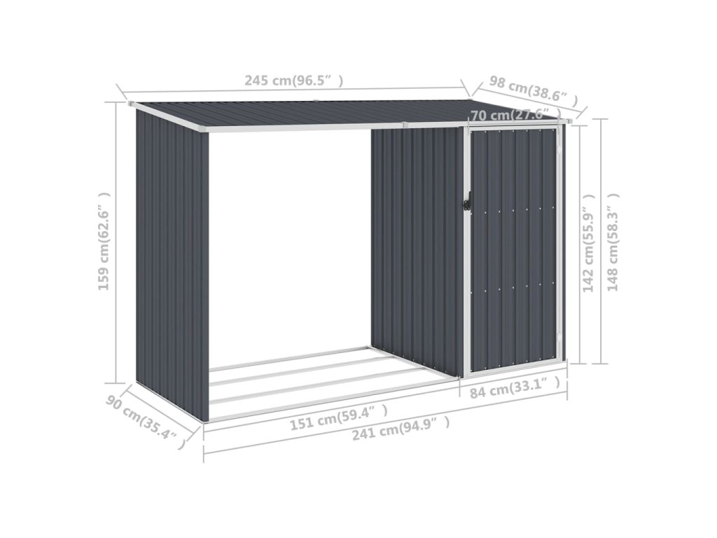 Zahradní kůlna na dříví uhlová 245x98x159 cm pozinkovaná ocel