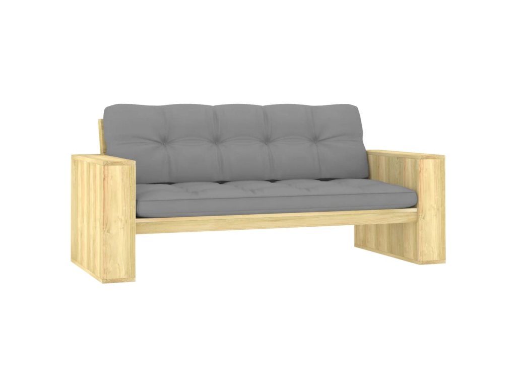 Zahradní lavice a šedé podušky 179 cm impregnovaná borovice