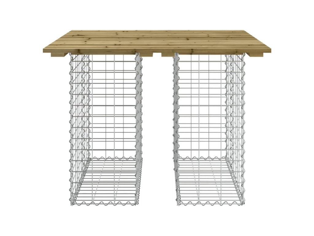 - Robustní a stabilní základna: Tato venkovní lavice je vybavena základnou z pozinkovaného ocelového gabionového koše, který je navržen tak, aby jej bylo možné naplnit kameny a štěrkem pro atraktivnější vzhled. Mřížku gabionového koše tvoří podélné a svislé drátky, které jsou navíc v každém spoji svařené pro lepší stabilitu.