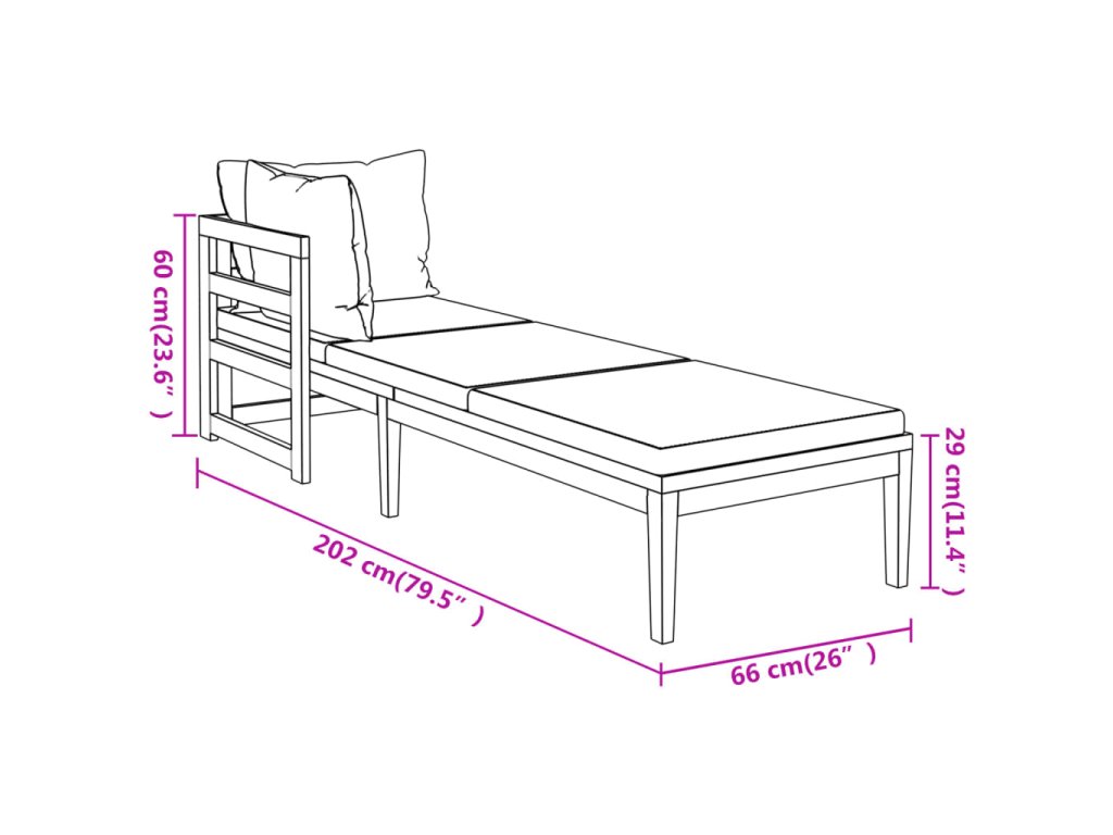 - Rozměry každého zahradního lehátka: 202 x 66 x 60 cm (D x Š x V)