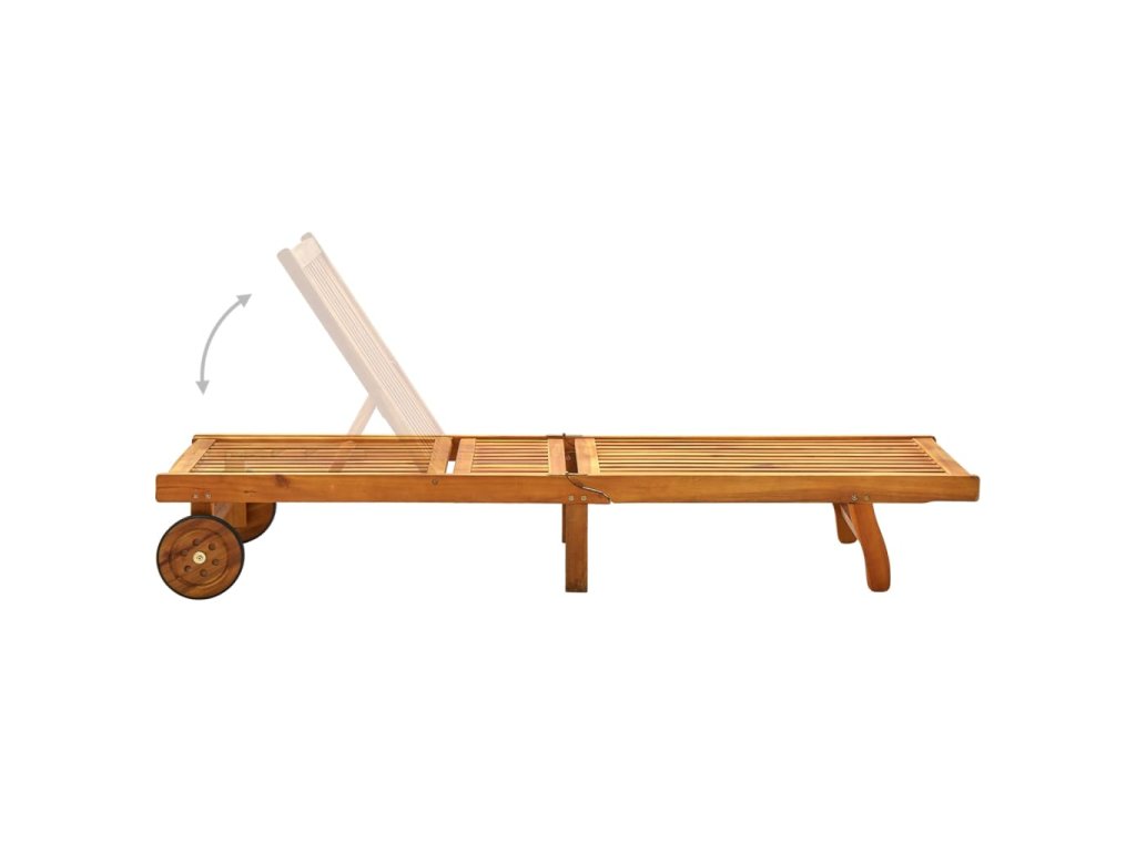 Toto zahradní lehátko je vyrobené z masivního akáciového dřeva, takže je robustní a stabilní. Opěrky zad a nohou jsou polohovatelné a můžete je snadno nastavit do požadované polohy. Toto zahradní lehátko se 2 kolečky snadno přemístíte, kamkoliv potřebujete. Lehátko je vybavené praktickým výsuvným stolkem, na který můžete položit telefon, sluneční brýle, pití a další drobné předměty. Polštářek přispívá k optimálnímu komfortu během vaší relaxace. Každá poduška je vybavená dvěma páry šňůrek, abyste ji mohli pevně zafixovat k lehátku.
