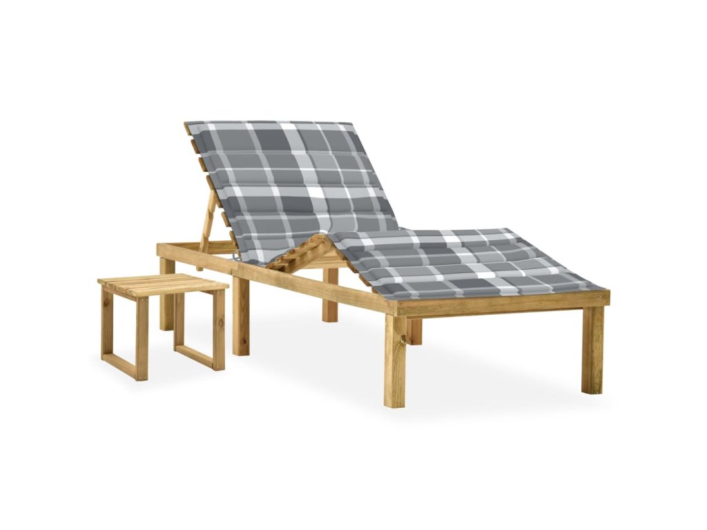 Zahradní lehátko se stolkem a poduškou impregnovaná borovice