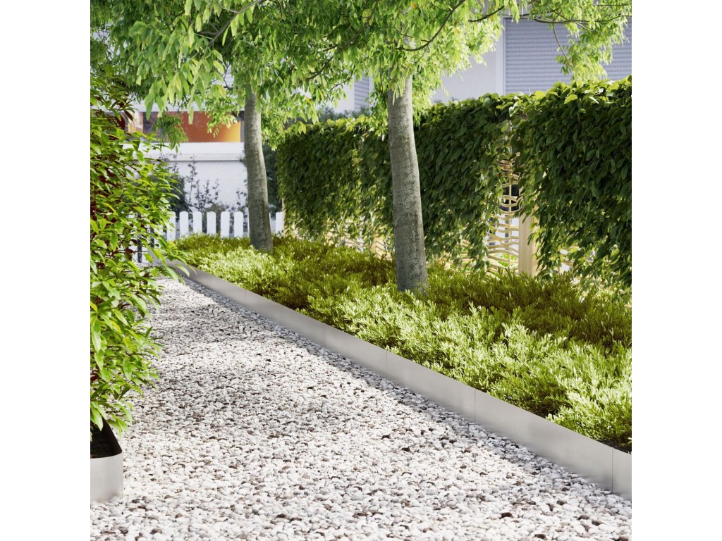 Pevný materiál: Obrubník je vyrobený z odolných materiálů, takže bez problémů zvládá počasí. Je navržený, aby vydržel a udržoval si svůj vzhled i v dešti, slunci a větru, a poskytuje tak spolehlivou službu po celý rok. Moderní design: S čistými liniemi a minimalistickým stylem, tenhle obrubník dodává vašemu venkovnímu prostoru moderní nádech. Jeho jednoduchý design přidává zahradě nebo terase nádech elegance. Zvýšená funkčnost: Tento obrubník usnadňuje oddělení různých oblastí, udržuje chodníky bez trávy a mulče. Nabízí jak estetické, tak praktické výhody, zjednodušuje údržbu a zlepšuje vzhled krajiny. Univerzální použití: Perfektní k použití kolem příjezdových cest, květinových záhonů nebo teras, tenhle obrubník se hodí do různých uspořádání a zahradnických stylů. Jeho elegantní design a trvanlivost ho činí vhodným pro všechny druhy zahrad. Základní instalace: Instalace je jednoduchá, stačí dva lidi a kladivo na správné umístění. Proces zajišťuje, že obrubník zůstane na svém místě a funkční, takže vaše venkovní prostory budou upravené a organizované.- Barva: Stříbrná