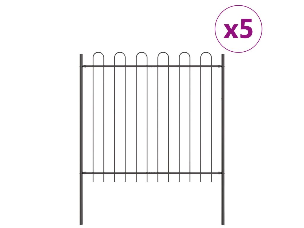 Zahradní plot 5 pcs Šedá 8,5 x 1,5 m Práškově lakovaná ocel