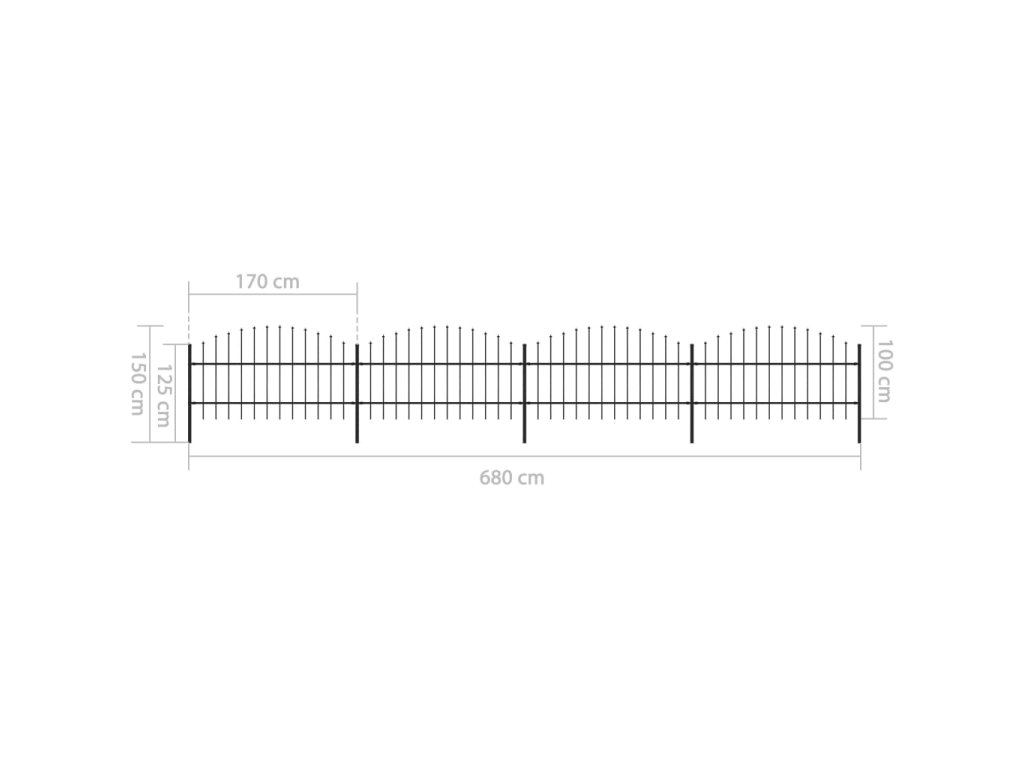 Zahradní plot s kopím nahoře ocelový 714,5 x 100 cm černý