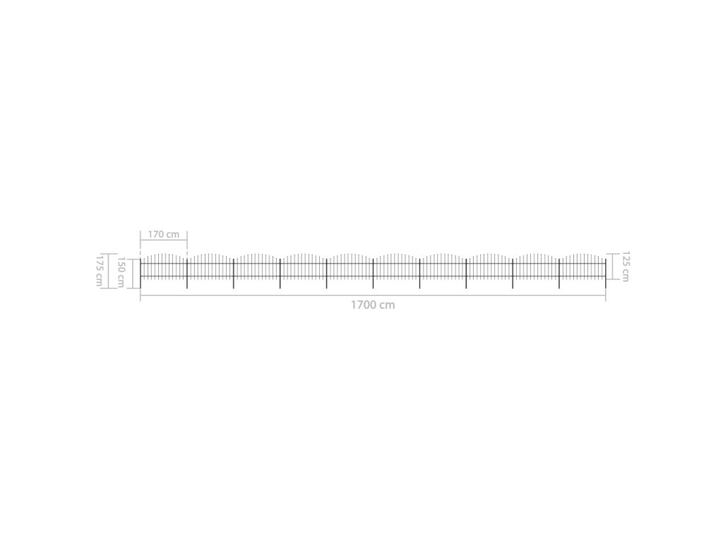 Zahradní plot s kopím nahoře ocelový 1781,5 x 125 cm černý