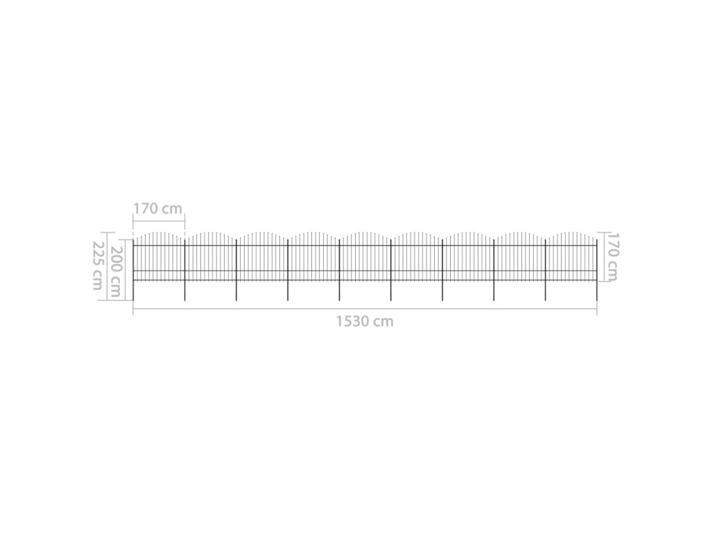 Zahradní plot s hroty ocel (1,5–1,75) x 15,3 m černý