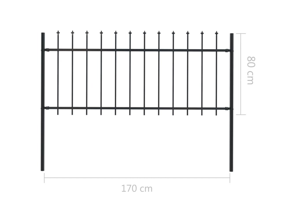Zahradní plot s kopím nahoře ocelový 181 x 80 cm černý