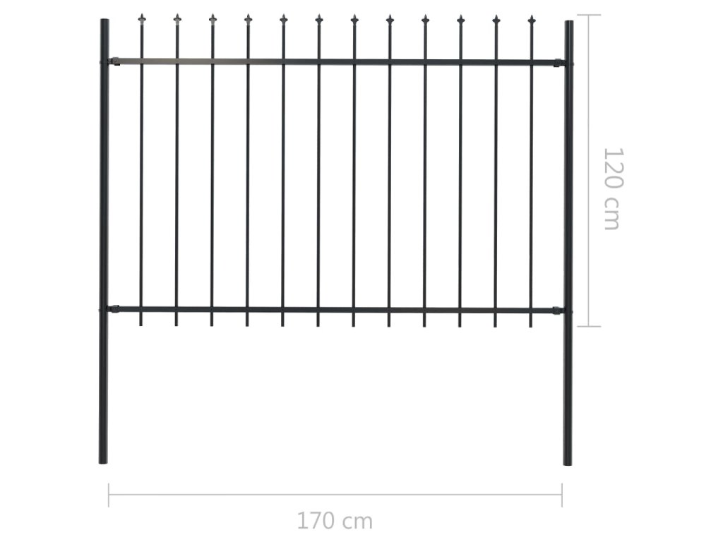 Zahradní plot s kopím nahoře ocelový 181 x 120 cm černý