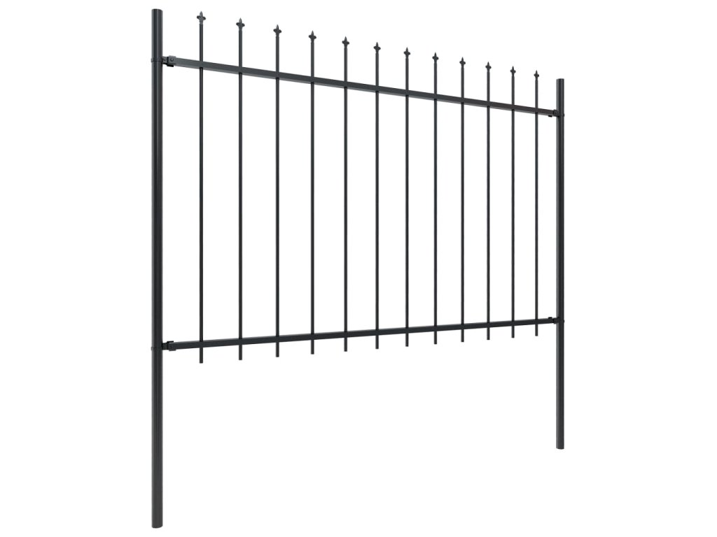 Zahradní plot s kopím nahoře ocelový 1070 x 120 cm černý