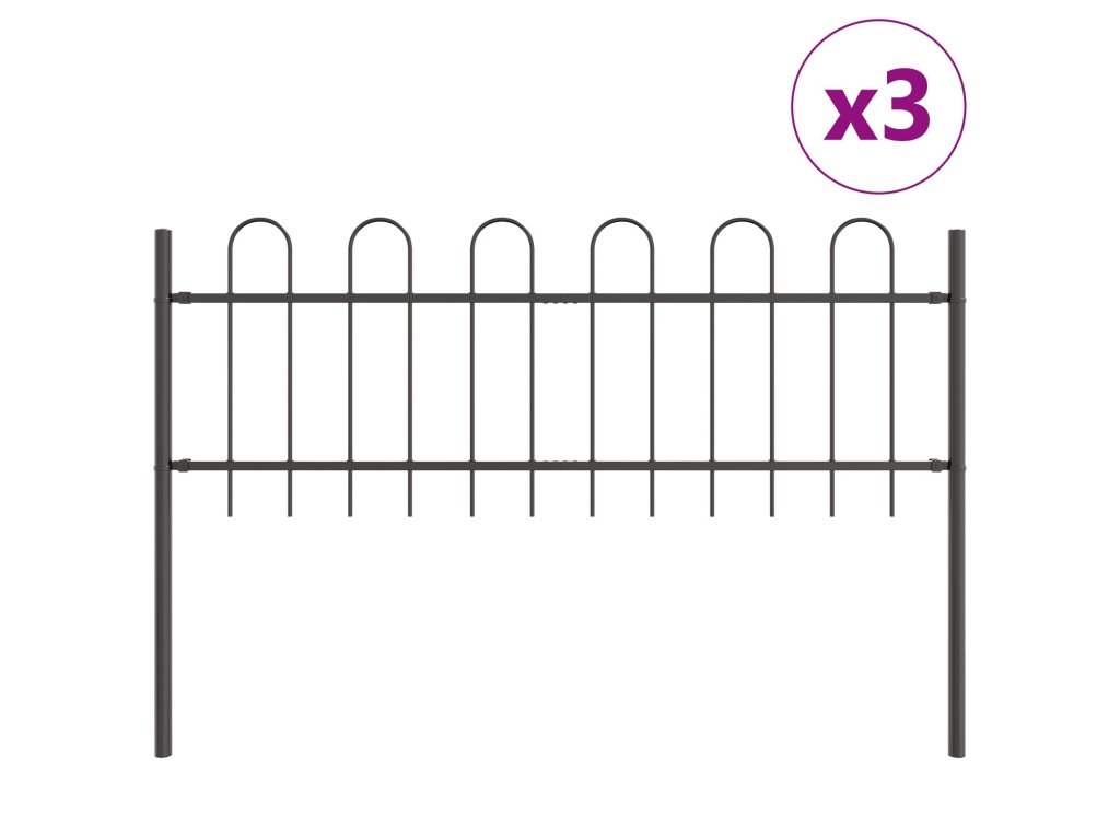 Zahradní plot 3 pcs Šedá 5,1 x 0,6 m Práškově lakovaná ocel