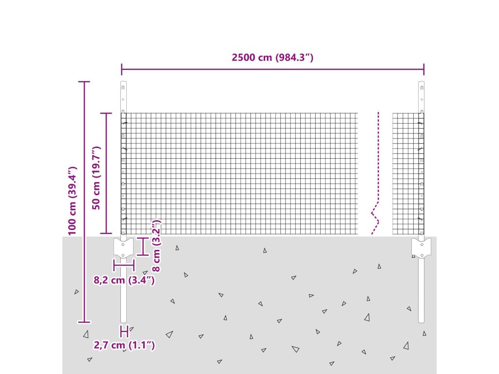 Plot s sloupkem Stříbrná 0,5 x 25 m Ocel