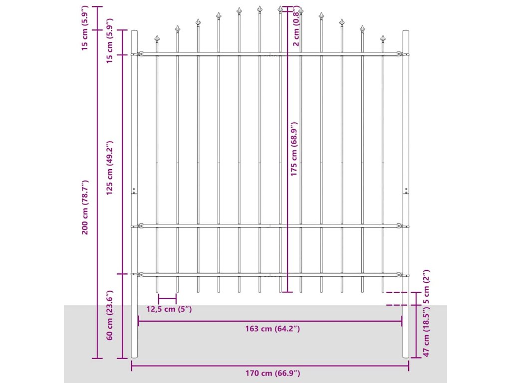 Zahradní plot Šedá 1190 x 175 cm Práškově lakovaná ocel
