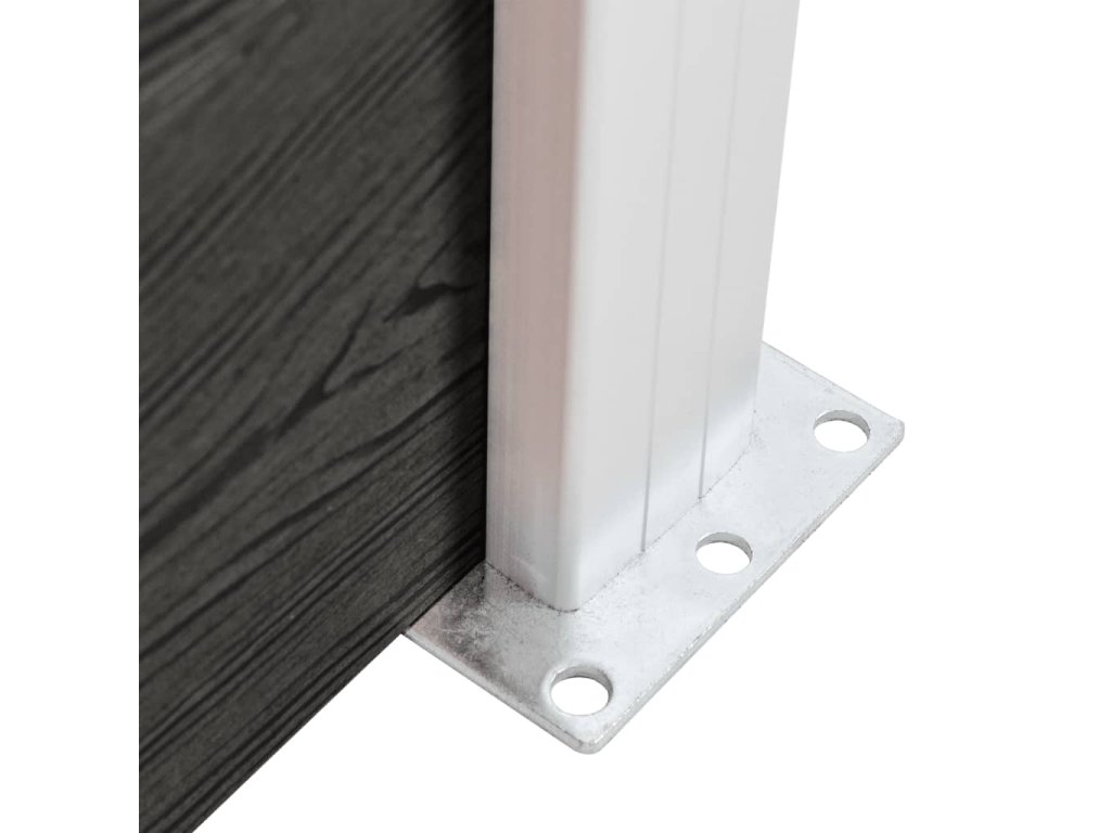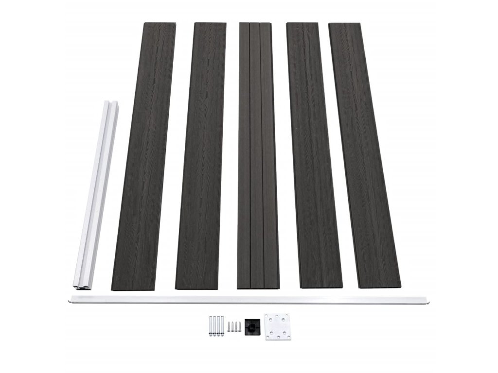 Balení obsahuje 9 dřevoplastových desek, 1 sloupek, 1 ocelovou základnu a 1 hliníkovou spojnici.