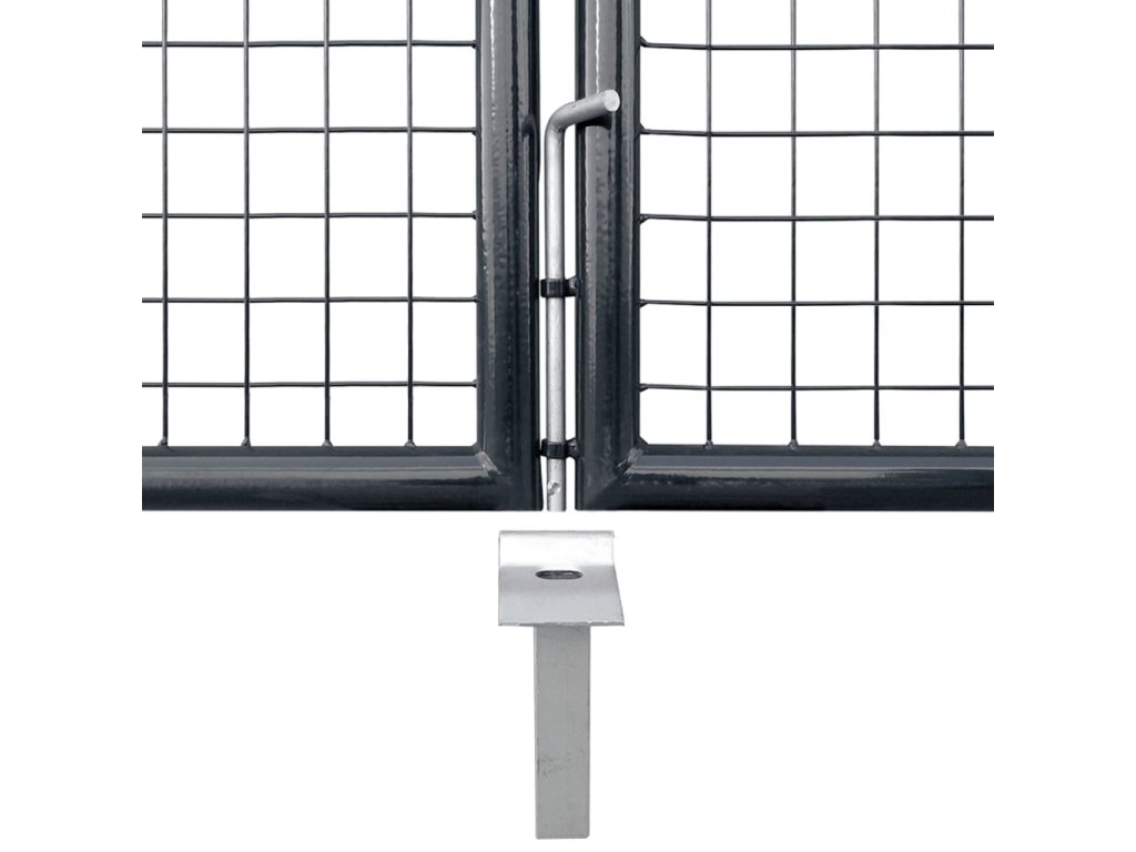 Zahradní branka je perfektně zpracovaná a vyrobená z pozinkované oceli s práškovým povrchem, který je odolný proti korozi a vytváří pevnou konstrukci. Má dva boční sloupky se šrouby k zavěšení pro snadnou instalaci. Je rovněž vybavena ukotvovacím kolíkem pro velký spodní šroub, který zajišťuje, že může být branka bezpečně uzamčena.