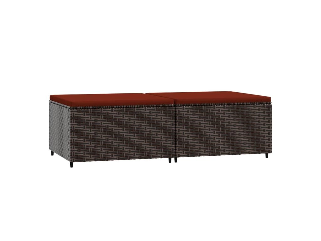 Zahradní podnožky s poduškami 2 ks hnědé polyratan