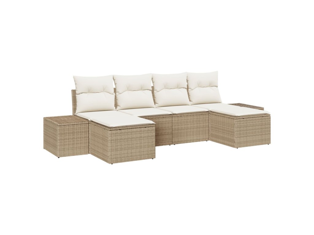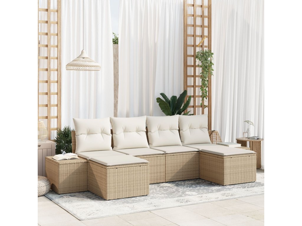 Sada zahradních pohovek s polštářem 6 pcs Béžová polyratan