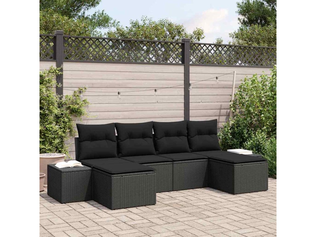 Sada zahradních pohovek s polštářem 4 pcs Černá polyratan
