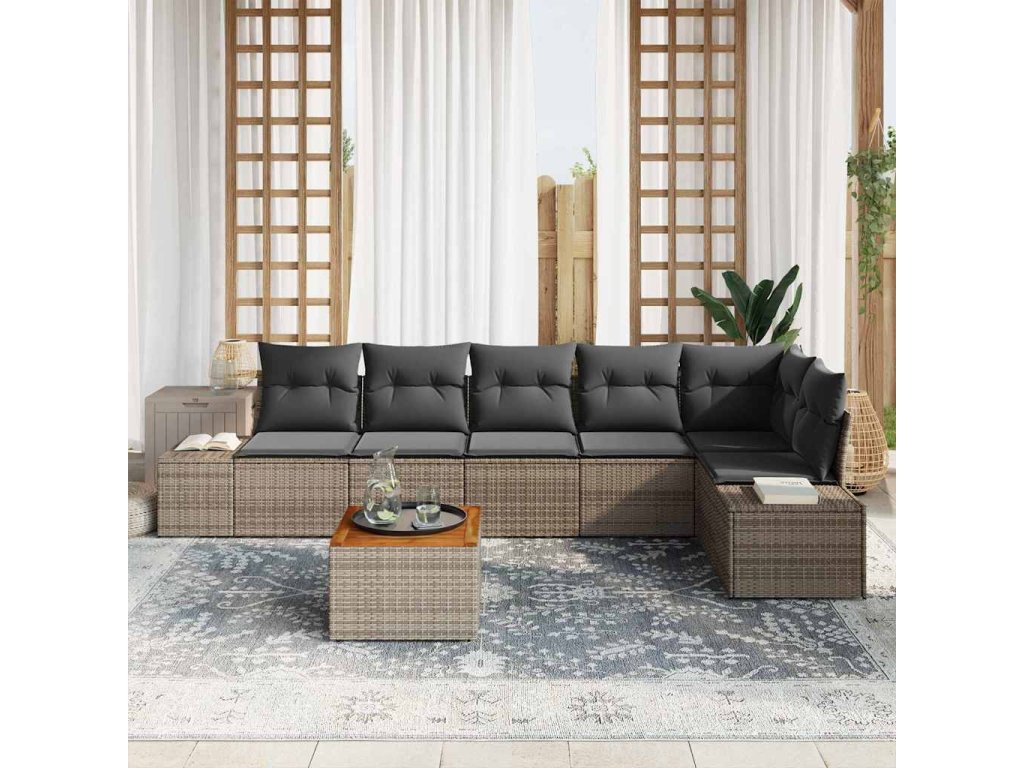- Odolné materiály: Konstrukce z poly ratanu a masivního akáciového dřeva, tato zahradní sofa souprava je navržena tak, aby vydržela venkovní klimatické podmínky. Poly ratan poskytuje tkanou texturu, která zvyšuje estetickou přitažlivost, zatímco masivní akáciové dřevo dodává sílu a stabilitu. Práškově lakovaná ocel zajišťuje robustnost, což zaručuje, že souprava zůstává v perfektním stavu, odolává rzi a každodennímu opotřebení po několik sezon.