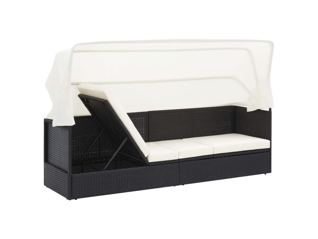Zahradní lehátko má práškově lakovaný ocelový rám, který je pokrytý klimaticky odolným PE ratanem, který se také snadno čistí. Odnímatelná tlustá poduška na sedák je velmi pohodlná. O vaše bezpečí při slunění se postará skládací baldachýn.