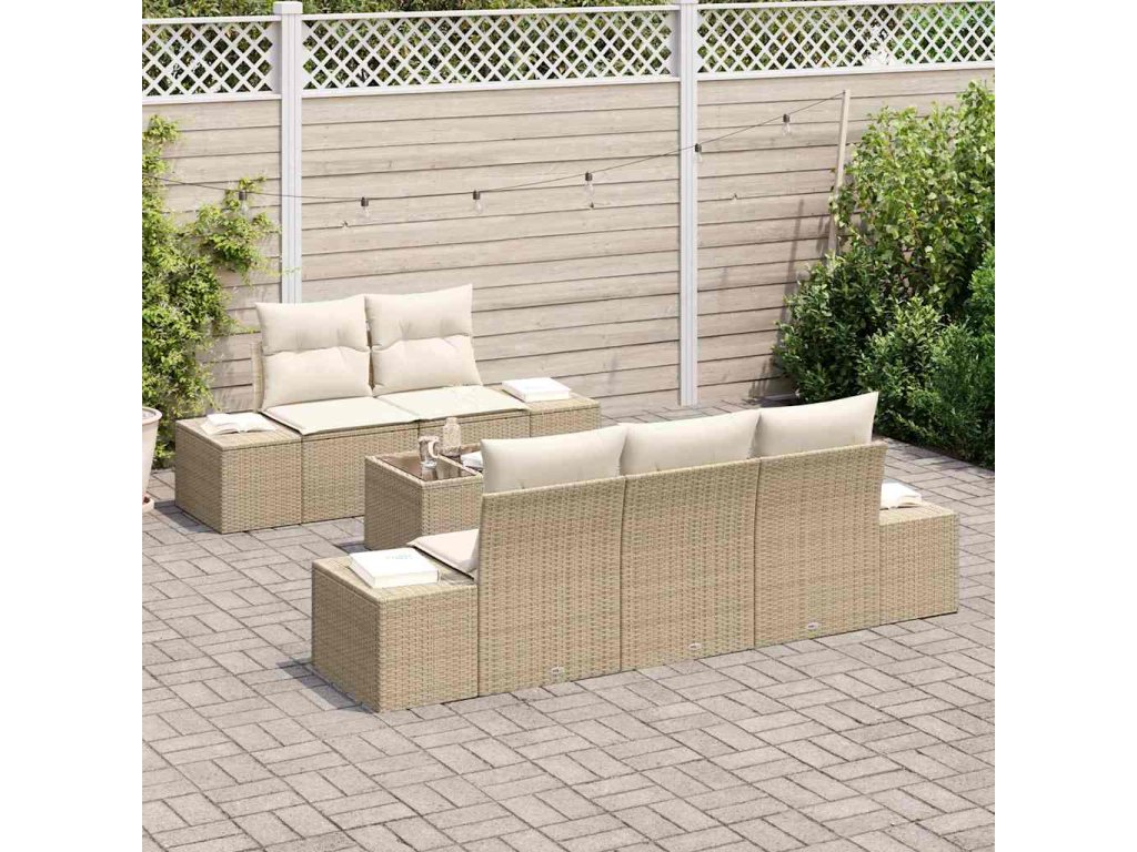 Sada zahradních pohovek 6 pcs Béžová a krémová polyratan