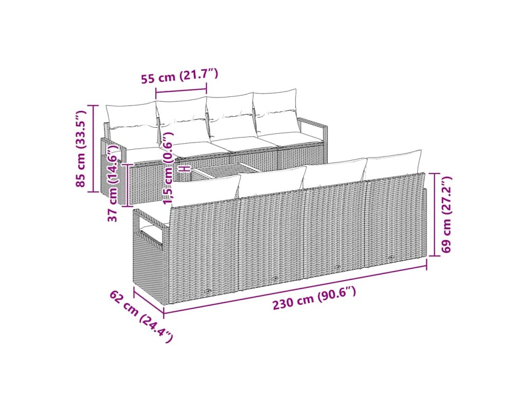 Tato Poly Rattan Zahradní Sedací Souprava vás zve, abyste si užívali lenivé slunné odpoledne na vaší zahradní terase. Navržena v moderním stylu, tato souprava spojuje jednoduchost s funkčností a nabízí čisté linie a minimální ornamentaci. Čtvercový tvar soupravy, harmonicky spárovaný s woven texturou, přináší kousek současné elegance do vašeho venkovního prostoru. Její všeobecný půvab ji činí ideální pro pořádání rodinných setkání nebo pro užívání tichého okamžiku s dobrou knihou.