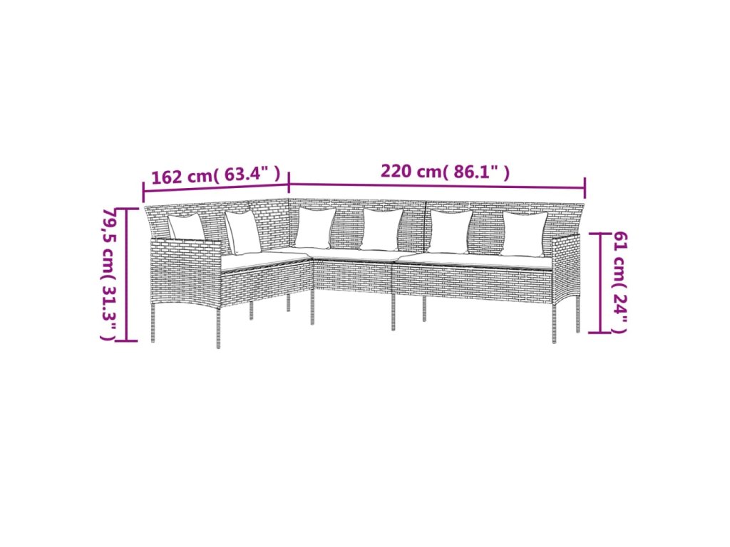 Odpočiňte si a užijte si volný čas na této módní zahradní pohovce ve tvaru L s poduškami!