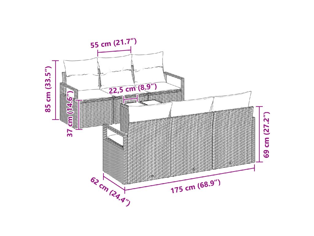 Tato moderní zahradní sedací souprava je ideální volba pro ty, kteří chtějí svým venkovním prostorům přidat styl a funkčnost. Její čisté linie a jednoduchý design ji dělají skvělou pro terasy a zahrady, přičemž tkaná textura přidává na sofistikovanosti. Souprava snadno zapadne do jakéhokoli prostředí a poskytne pohodlné sezení pro rodinná setkání nebo osamělou relaxaci.