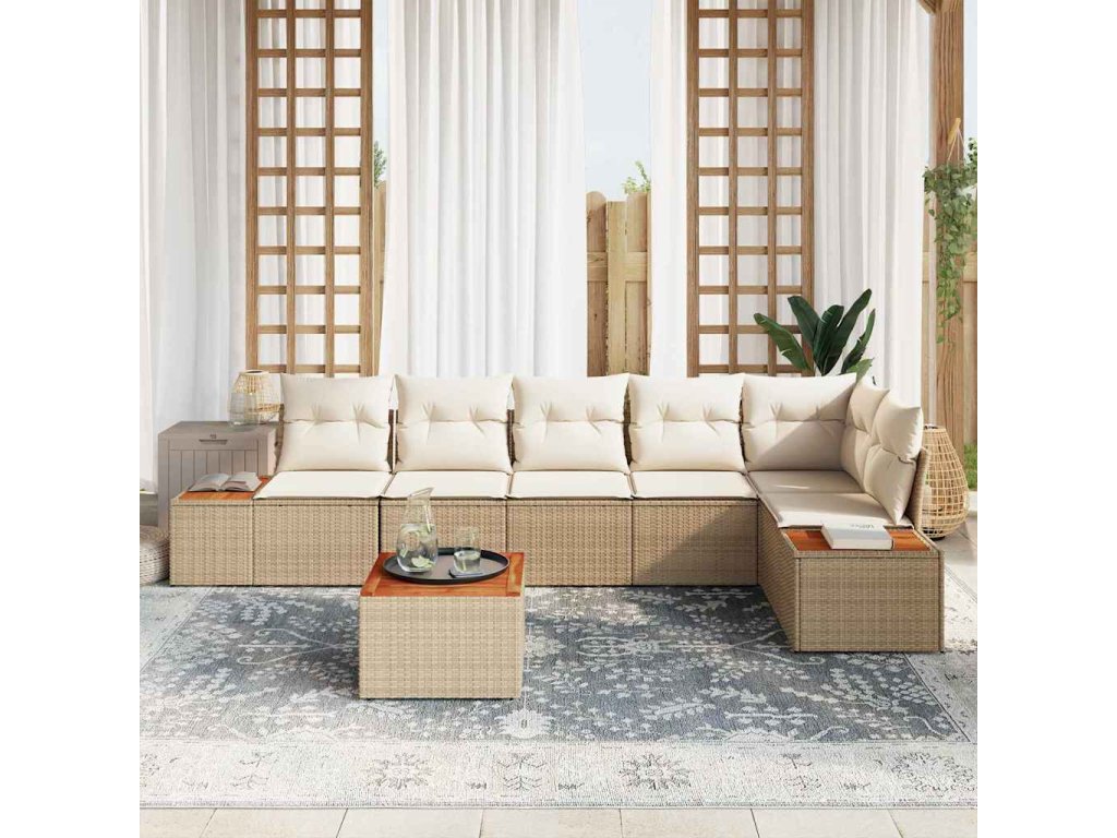 Sada zahradních pohovek 7 pcs béžová a krémová Poly ratan