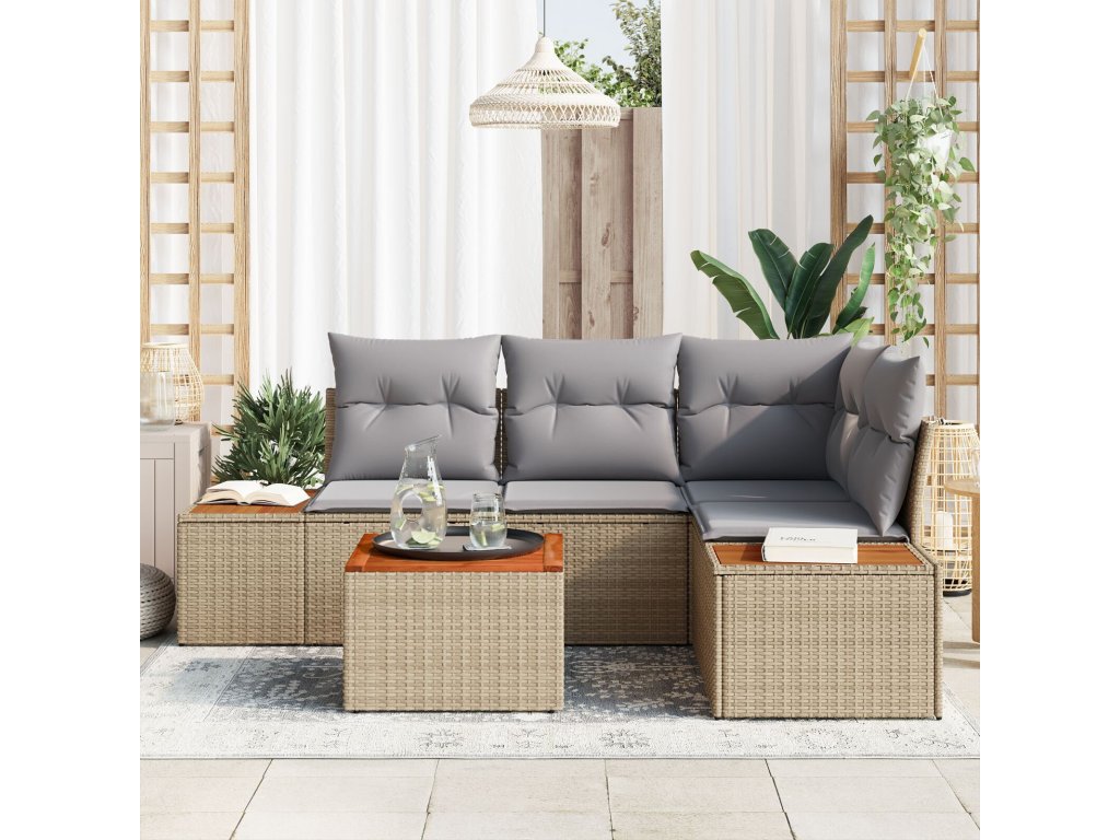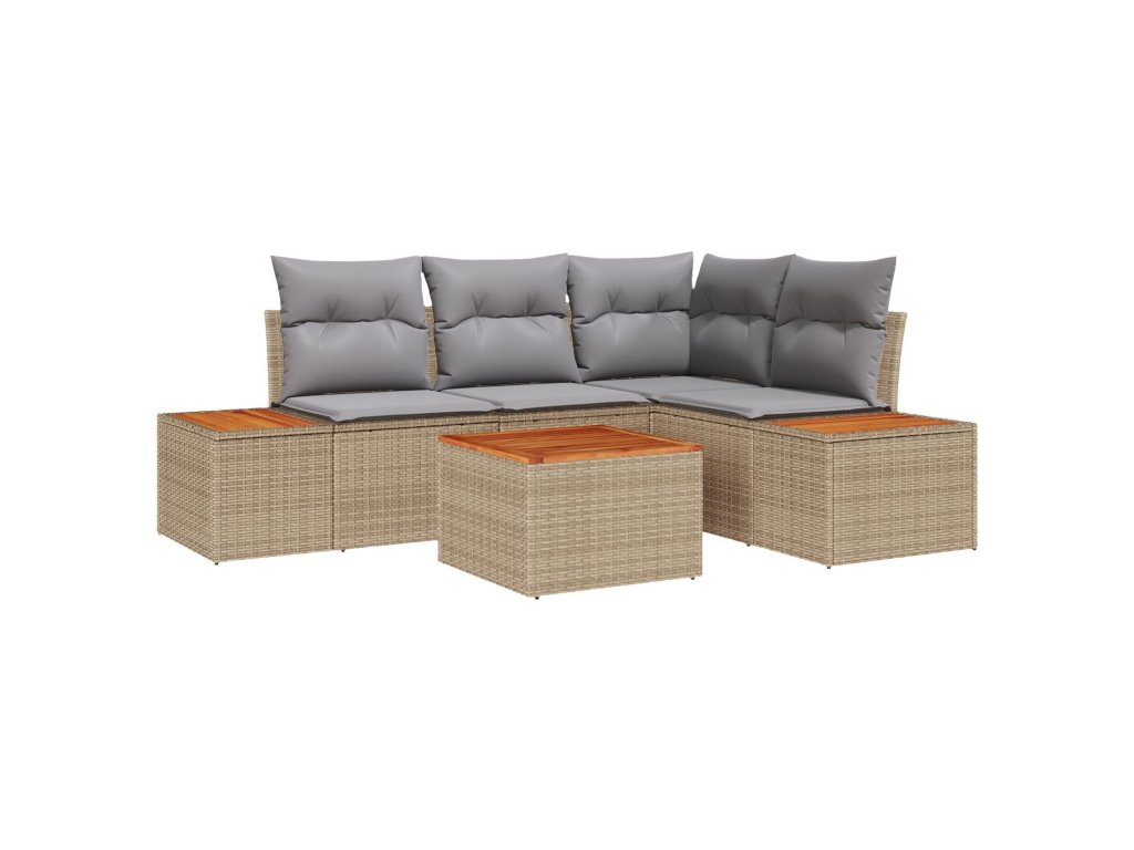 Sada zahradních pohovek s polštářem 5 pcs Béžová polyratan