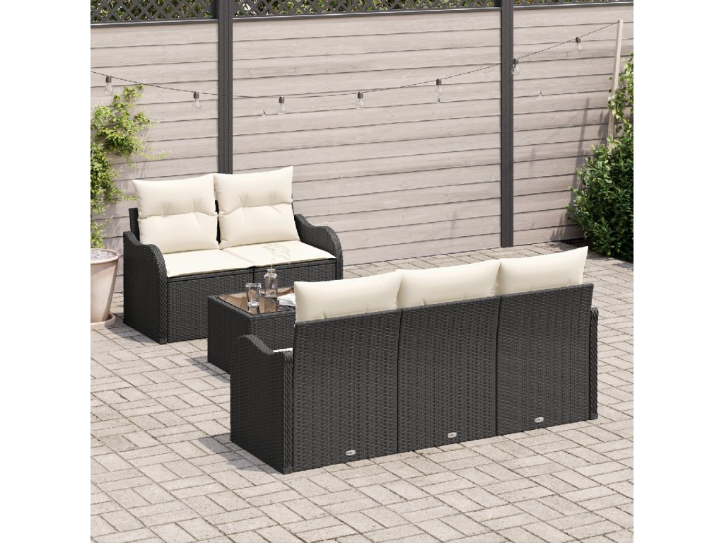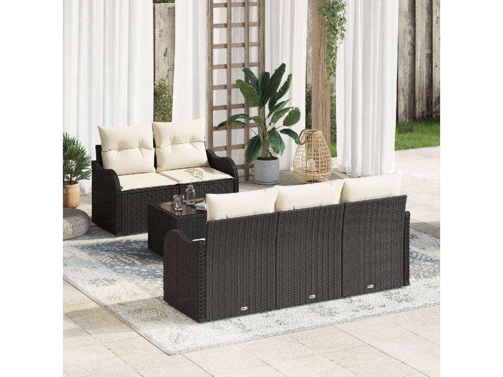 Materiály: Tento set je převážně z poly ratanu, což je materiál odolný a vizuálně hezký. Je pohodlný, pevný a odolný proti povětrnostním vlivům. Polyesterové vlákno zajistí příjemný pocit a chrání před vlhkostí a UV zářením. Ocelové nohy zajišťují stabilitu a dlouhou životnost. Zahrnuté komponenty: Souprava obsahuje střední sedadlo, čtyři pohovky s opěrkami a robustní stůl. Skleněná deska stolu přidává elegantní a trvanlivý povrch pro nápoje a dekorace. Křivky a opěrky z poly ratanu zvyšují pohodlí pro dlouhé posezení. Ocelové nohy garantují pevnou oporu na jakémkoliv povrchu. Funkce/design: Díky modulárnímu designu můžete přizpůsobit uspořádání sedadel podle vašich potřeb. Lehká konstrukce umožňuje snadnou manipulaci a přetváření, takže se snadno přizpůsobí změnám v zahradě. UV-odolné materiály chrání před slunečním zářením, což zajišťuje dlouhou životnost. Doporučeno pro: Ideální pro slunné terasy, zahrady nebo venkovní kouty, umožňuje užít si pohodlné posezení venku. Díky modulárnímu designu podporuje různá uspořádání, ať už jde o malé sezení nebo velké akce. Ať už plánujete letní brunch nebo si chcete jen přečíst knihu, tento set se stane centrem vaší venkovní oázy. Péče a údržba: Udržujte soupravu v dobrém stavu jednoduše otřením vlhkým hadříkem a používáním ochranných obalů, když se nepoužívá. Pro delší životnost uchovávejte polštáře v suchu. Tyto jednoduché úkony zajistí, že váš set zůstane atraktivní s minimálním úsilím.- Barva: Černá