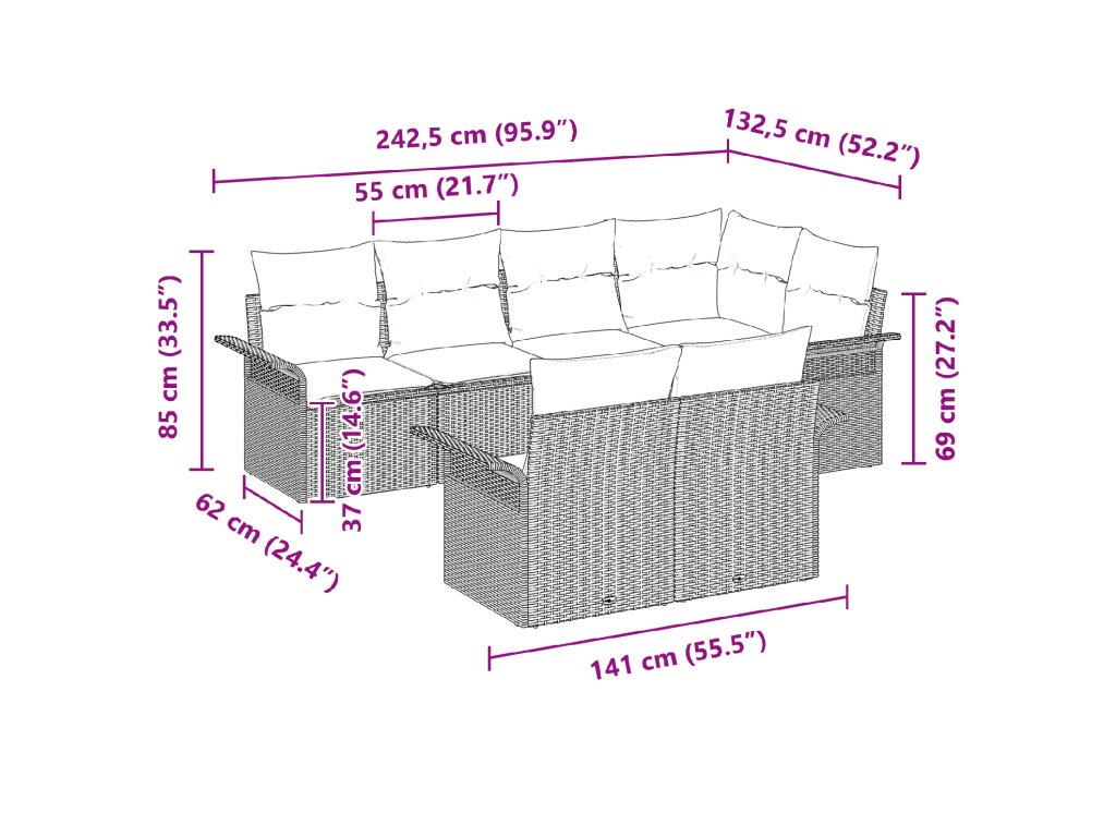 - 7 x Sedák: 55 x 55 cm (D x Š)