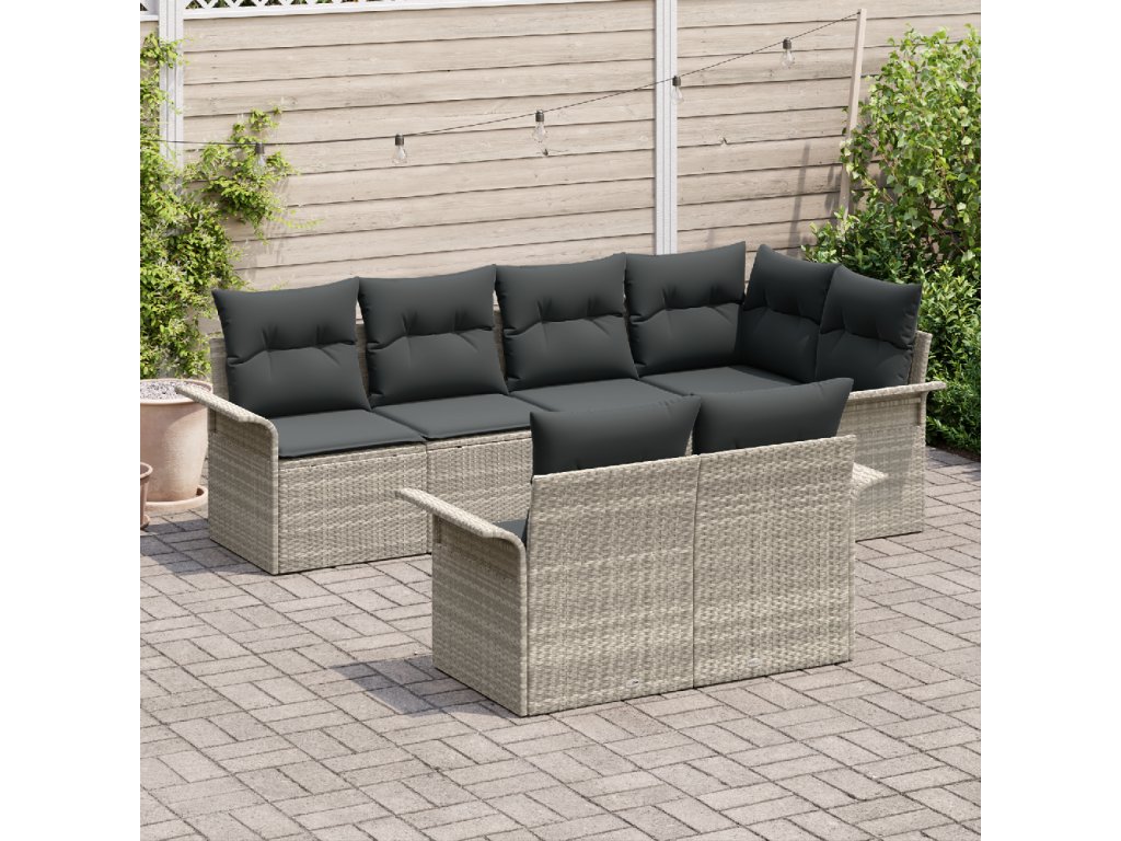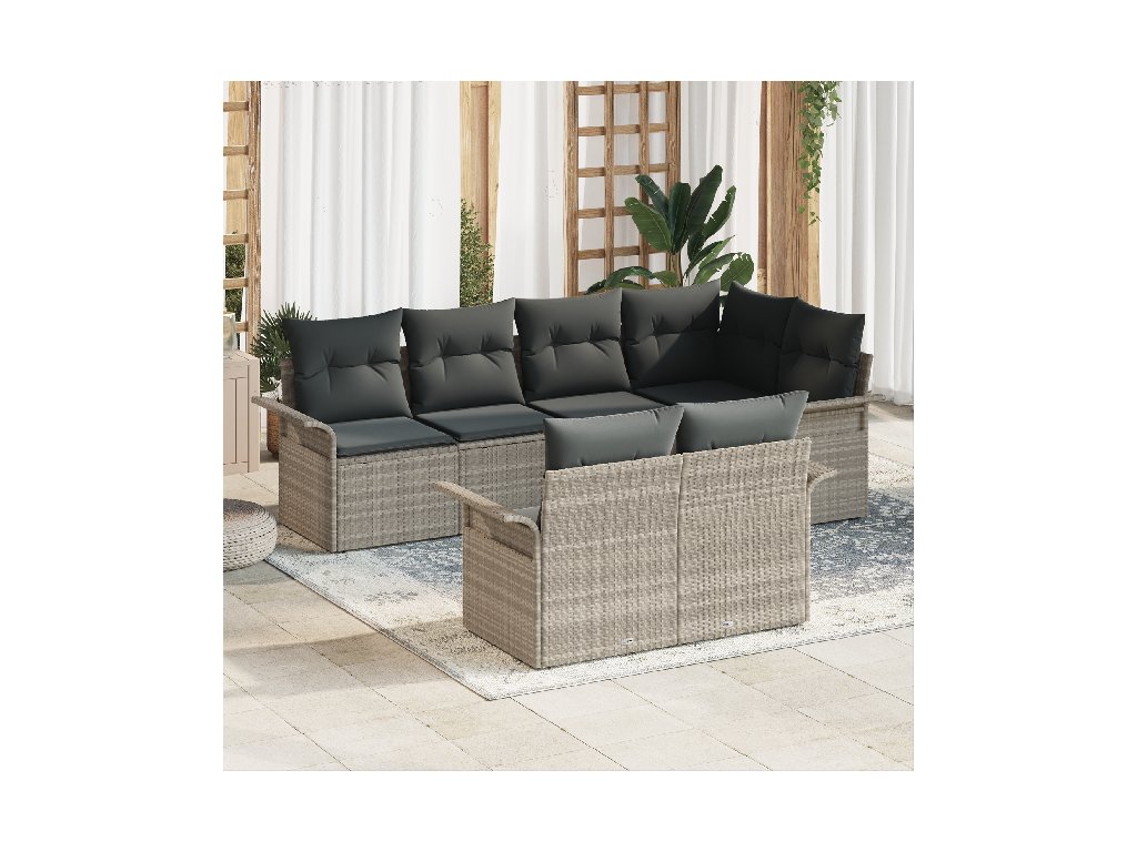 Sada zahradních pohovek s polštářem 7 pcs Světle šedá polyratan