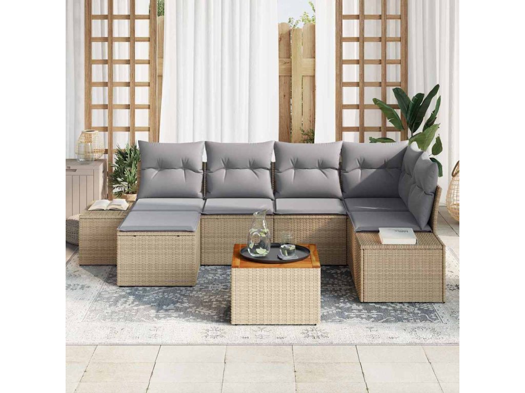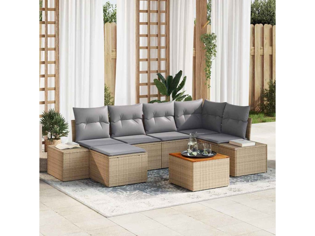 Sada zahradních pohovek 7 pcs béžová a světle šedá