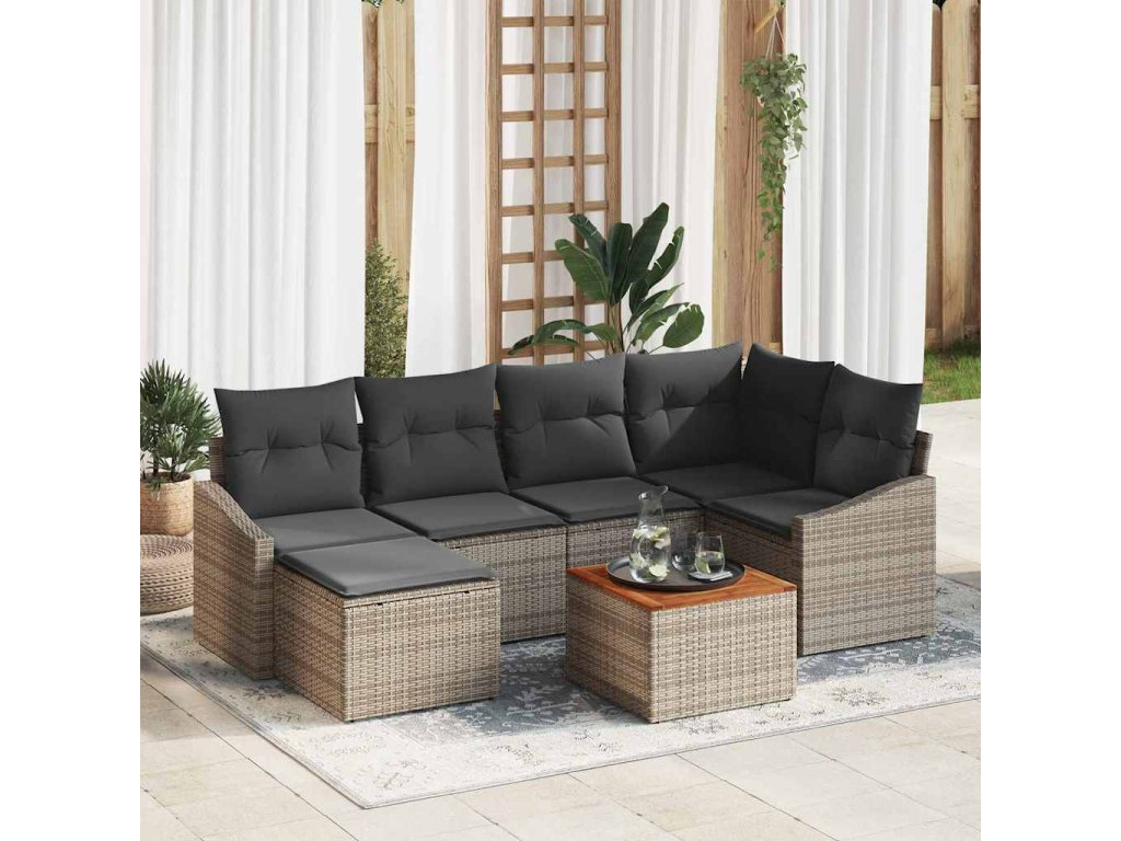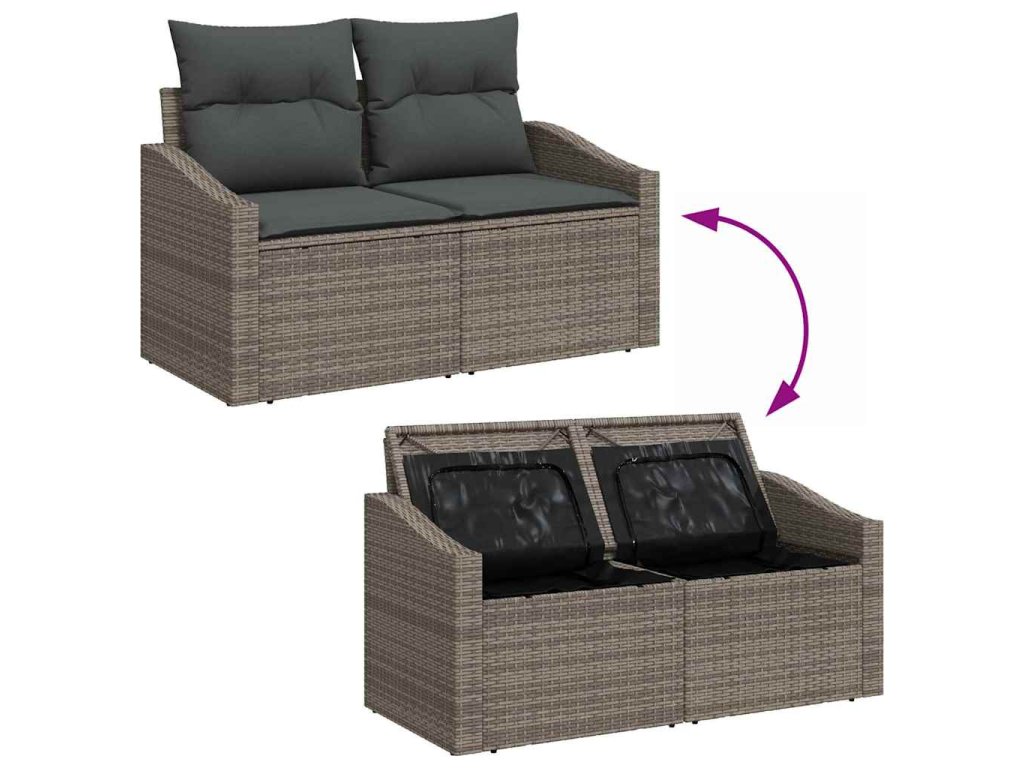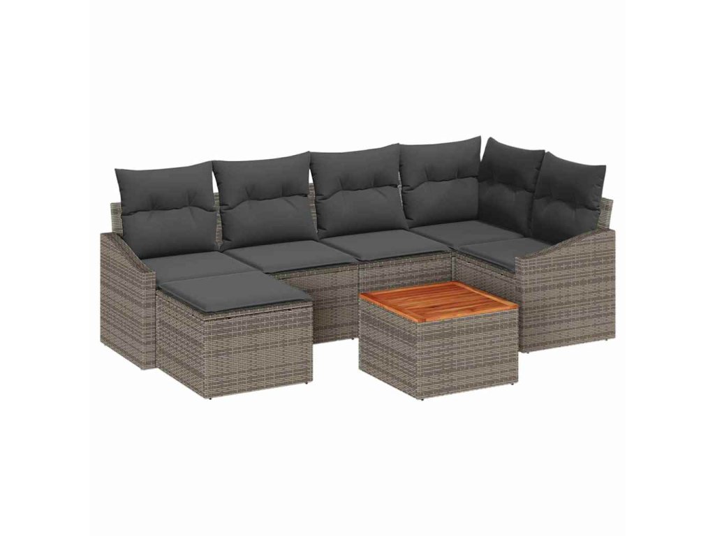 Tkaný poly ratanový povrch: Vyznačující se uměleckou tkanou strukturou, poly ratanové povrchy vyzařují eleganci a přidávají vrstvu pohodlí k vašemu venkovnímu sezení. Jako materiál odolný proti UV záření zajišťuje dlouhou životnost a trvalý styl, který uživatelé potřebují pro dlouhé venkovní pobyty bez opotřebení. Práškově lakovaný ocelový rám: Robustní konstrukce nábytku je vyrobena z práškově lakované oceli, známé svou pevností a schopností odolávat venkovním prvkům. Povrchová úprava poskytuje odolnost vůči rzi, slibující strukturální integritu, na kterou se lze spolehnout v průběhu času. Je to perfektní kombinace stylu a funkce, která zvyšuje důvěru a spokojenost uživatelů. Masivní akáciové dřevo: Přidávání přirozeného nádechu, akáciové dřevěné akcenty dodávají teplo soupravě. Známé svou odolností a bohatými odstíny, dřevo doplňuje soupravu nádechem přírody, i když je vystaveno venkovním podmínkám, což činí každé setkání zvláštním. Multifunkční úložné možnosti: Funkce úložných prostor integrovaných do sedacích kusů nabízí pohodlné řešení pro ukládání venkovních nezbytností. Chraňte své věci pomocí voděodolných tašek, které jsou součástí balení, a zajistěte, aby všechno zůstalo suché a snadno přístupné. Skvělé pro polštáře, deky nebo časopisy. Nastavitelné funkce: Nastavitelné nožičky jsou praktickým detailem, který zajišťuje, že souprava zůstává stabilní na nerovných površích, což ji činí přizpůsobitelnou a uživatelsky přívětivou. Je to promyšlené přidání pohodlí, které umožňuje uživatelům soustředit se na zábavu místo na nastavení.- Barva: Šedá