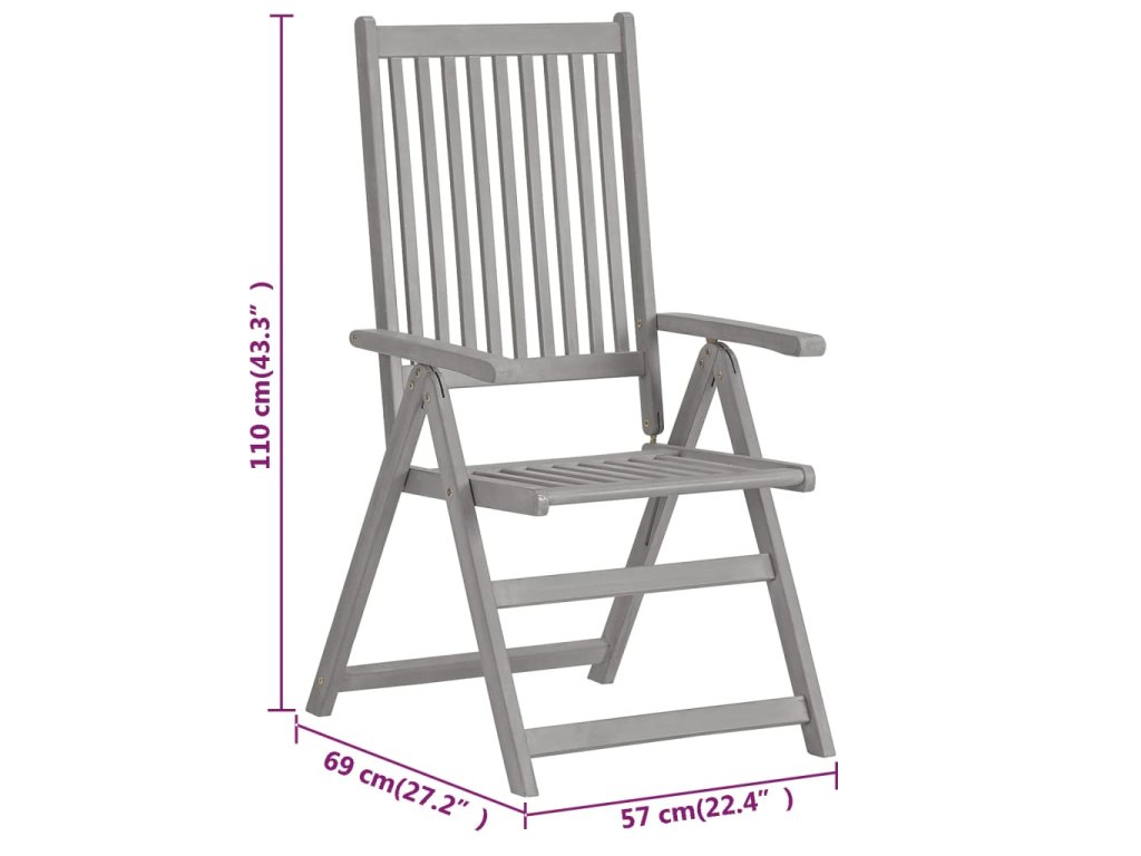 Tato křesla jsou vyrobená z masivního akáciového dřeva s šedou povrchovou úpravou. Akácie je tvrdé dřevo s hustými zrny. Tyto krásně navržené zahradní židle jsou stabilní, mají dlouhou životnost a atraktivní vzhled. Opěradla židlí lze nastavit do 5 poloh, takže můžete vždy najít tu nejpohodlnější polohu podle svých potřeb. Tyto židle jsou ideální pro stolování s rodinou nebo pro relaxaci na čerstvém vzduchu.