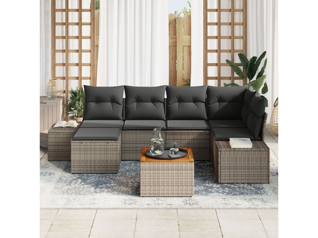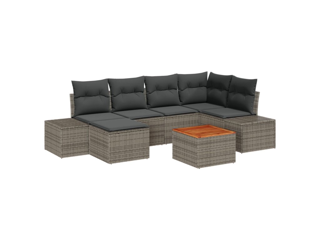 Sada zahradních pohovek s polštářem 7 pcs Šedá Poly ratan