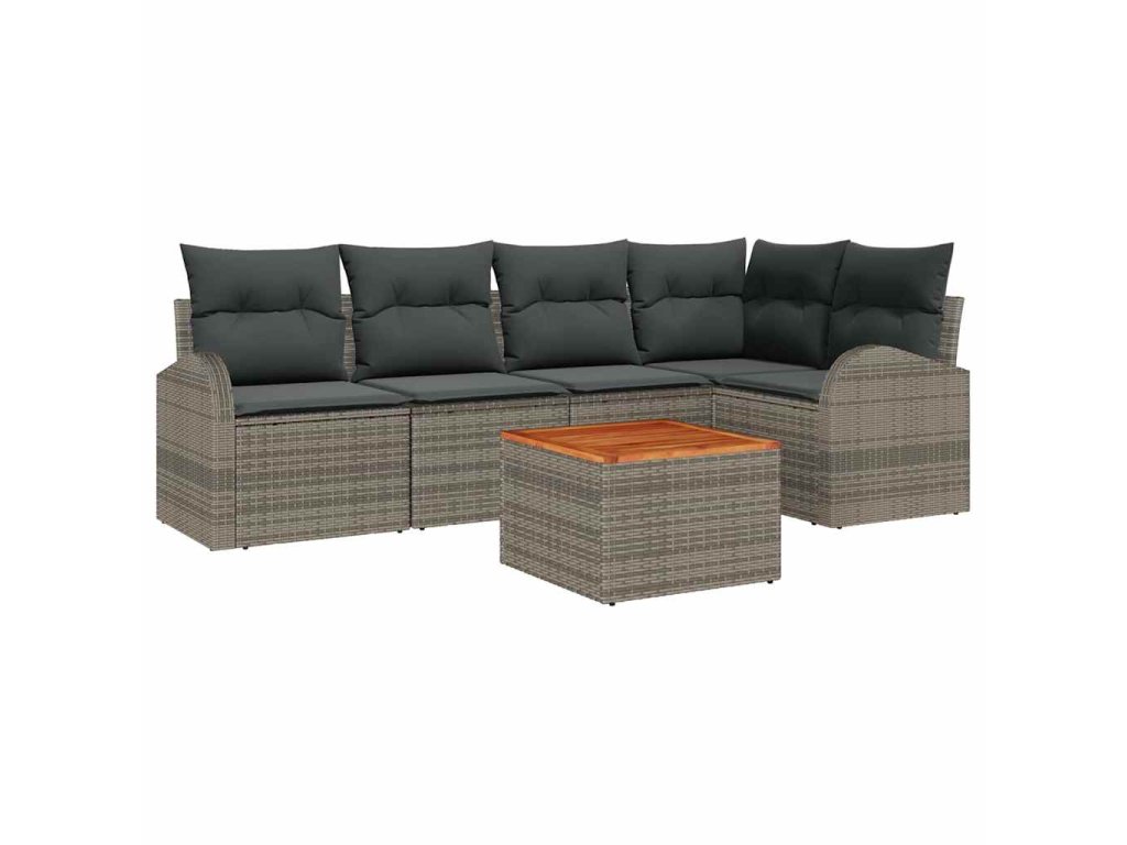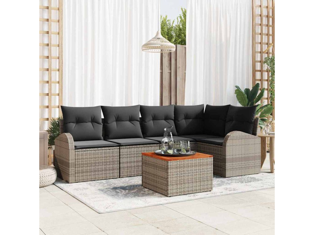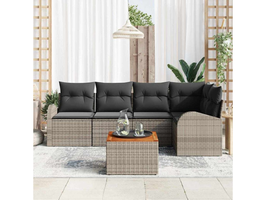 - Materiály: Hlavním materiálem této soupravy je poly ratan, který ukazuje tkanou texturu, jež poskytuje estetický vzhled a trvanlivost. Práškově lakovaný ocelový rám zajišťuje stabilitu a odolnost, zatímco masivní akáciové dřevo dodává dotek přírodní krásy a robustnosti. Každý materiál byl vybrán pro svoji schopnost odolávat venkovním podmínkám a přináší dlouhotrvající potěšení pro vaši zahradní zkušenost.