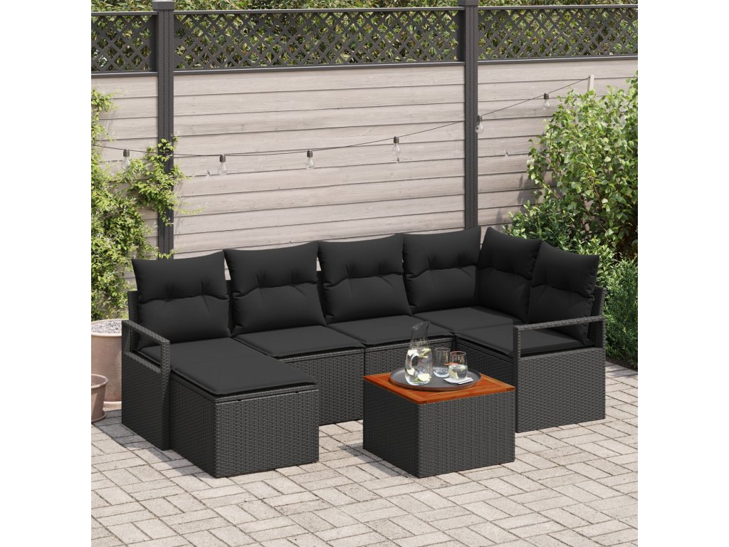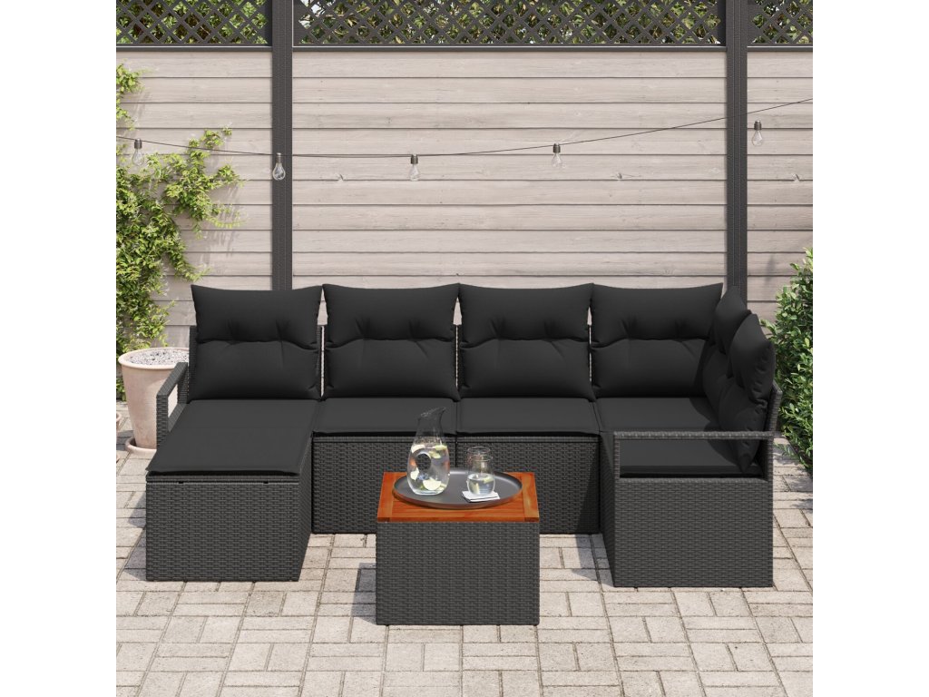 Sada zahradních pohovek s polštářem 7 pcs Černá Poly ratan