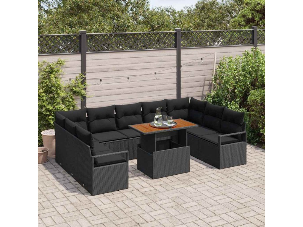 Sada zahradních pohovek s úložištěm 10 pcs Černá Poly ratan
