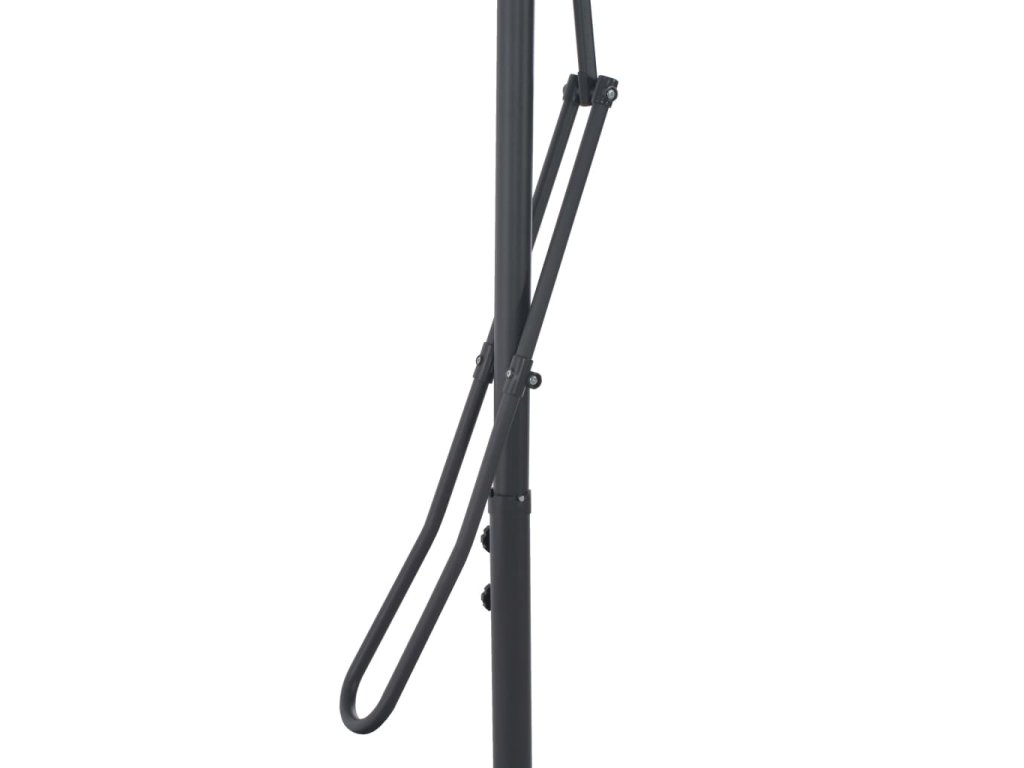 Stříška slunečníku je vyrobena z polyesterové tkaniny, která nepropouští škodlivé UV záření a nevybledne, a poskytne vám optimální ochranu před sluncem. Navíc se snadno čistí. Je vybavena pevnou křížovou základnou pro větší stabilitu. Silná ocelová tyč s 6 odolnými žebry zajišťuje, že se slunečník nehýbe a hodně toho vydrží. Tento jedinečný slunečník se dokáže otáčet o 360 stupňů, takže si úhel stříšky můžete jednoduše nastavit podle pohybů slunce. Položku je snadné sestavit.