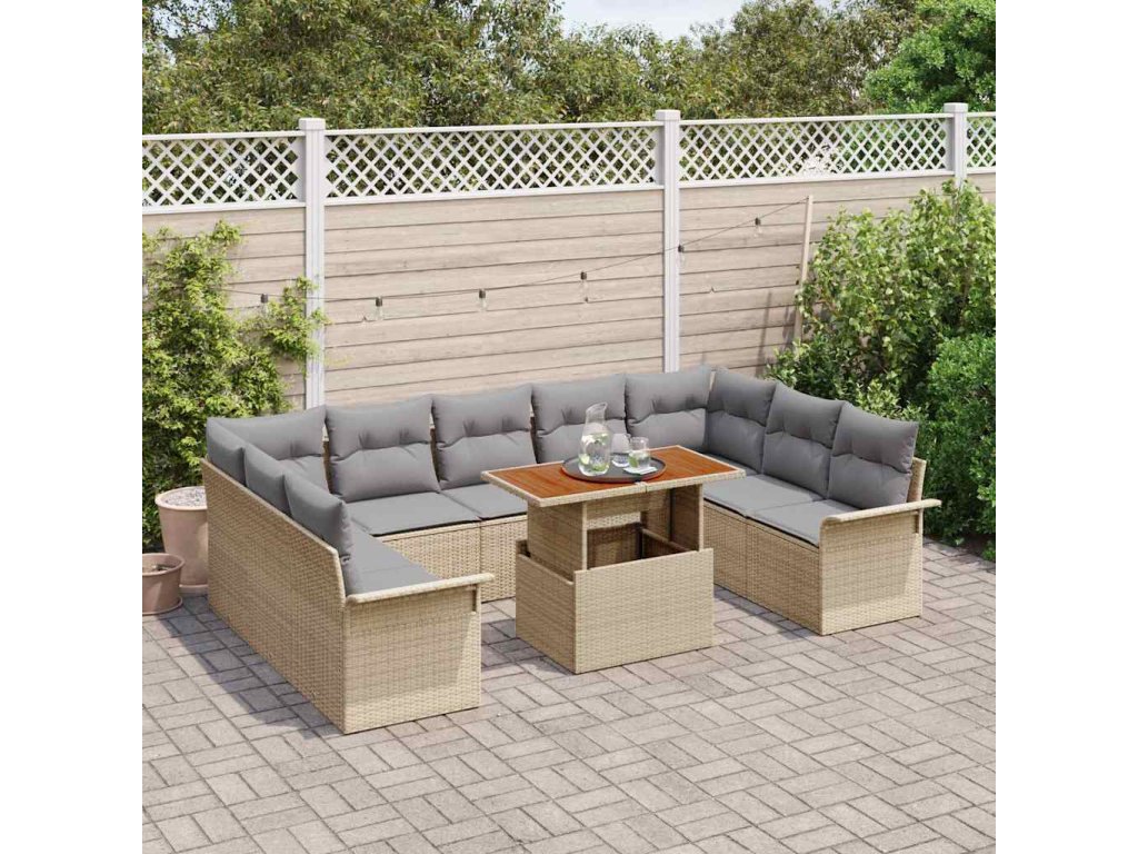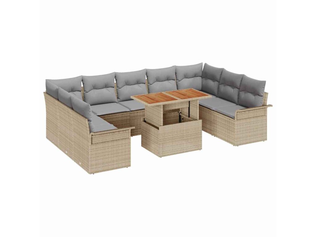 Sada zahradních pohovek s úložištěm 10 pcs Béžová Poly ratan