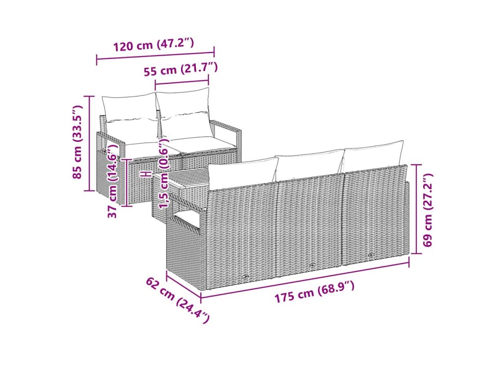 Tento Poly Ratanový zahradní pohovka je sofistikovaným venkovním doplňkem, který se bezproblémově prolíná se svým okolím. Charakterizován čtvercovými tvary a tkanými texturami, tento moderní nábytek obohacuje každou terasu nebo zahradní plochu. Ať už hostíte návštěvy, nebo si užíváte klidné odpoledne, tento set poskytuje univerzální možnost sezení, která se krásně přizpůsobí různým prostorovým konfiguracím.