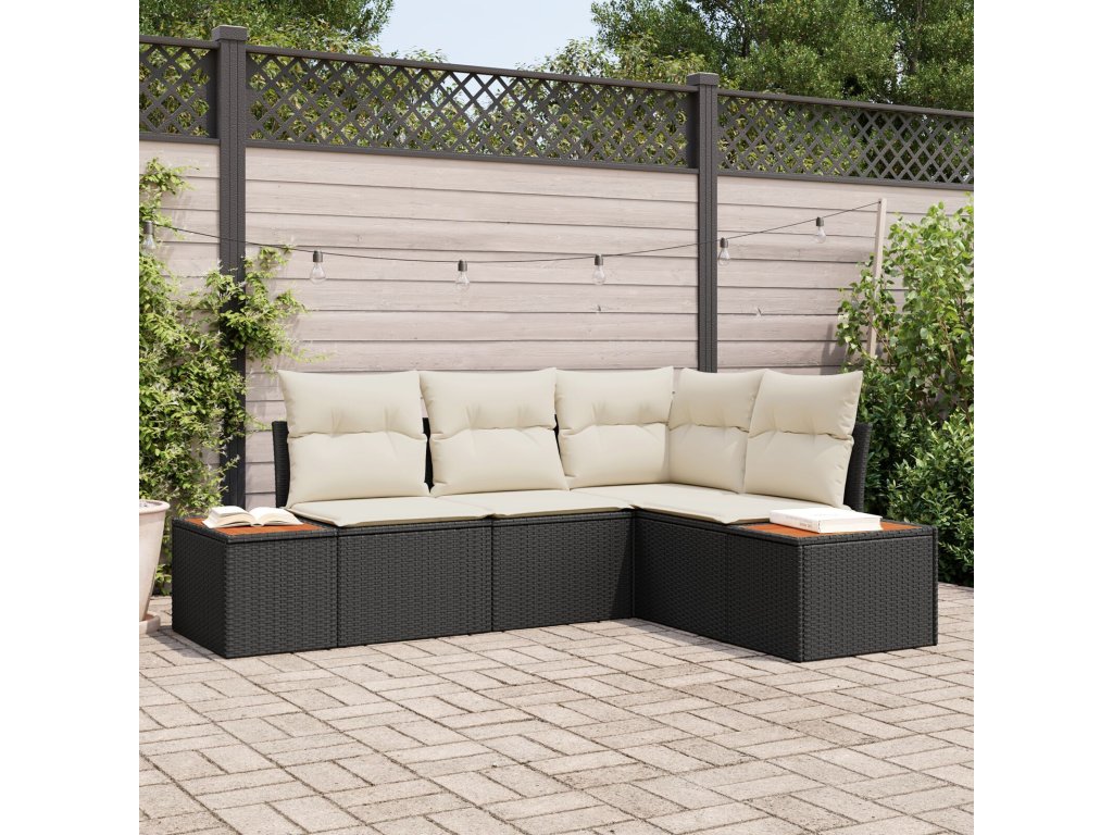 Sada zahradních pohovek s polštářem 5 pcs Černá Poly ratan